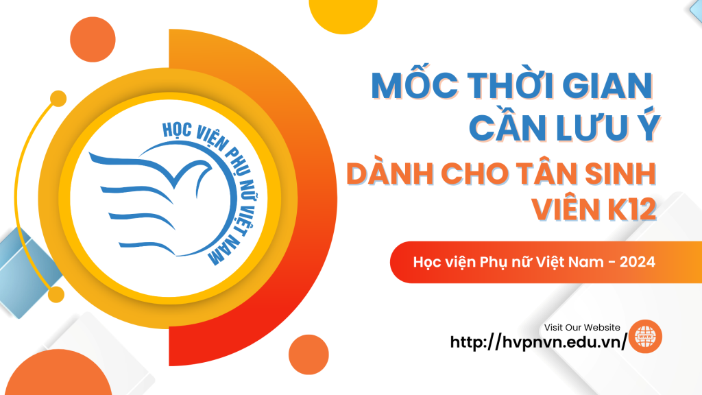 Để đảm bảo hoàn thành các thủ tục, hồ sơ nhập học và chính thức trở thành sinh viên của Học viện Phụ nữ Việt Nam, các tân sinh viên khóa 12 lưu ý một số mốc thời gian quan trọng dưới đây.