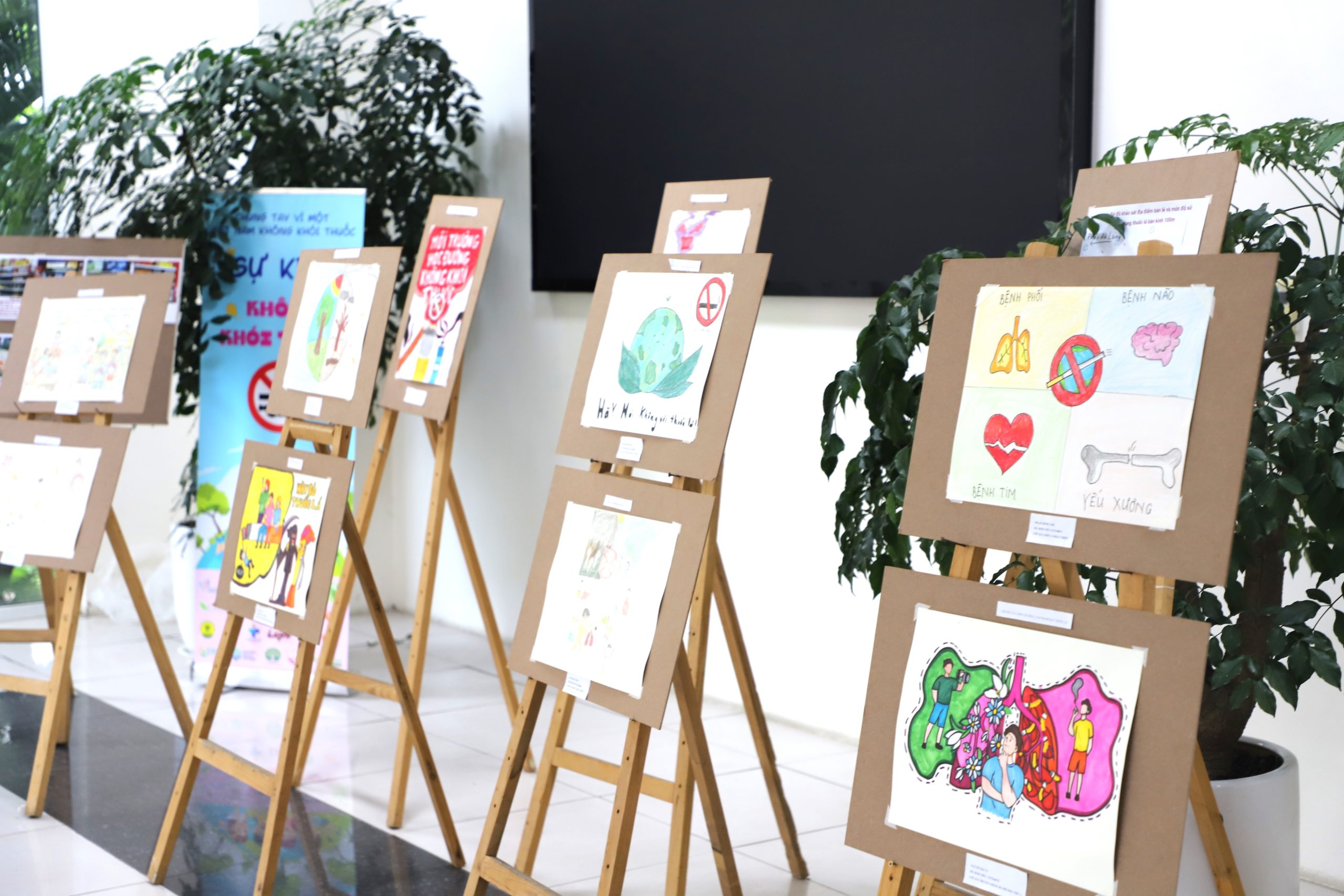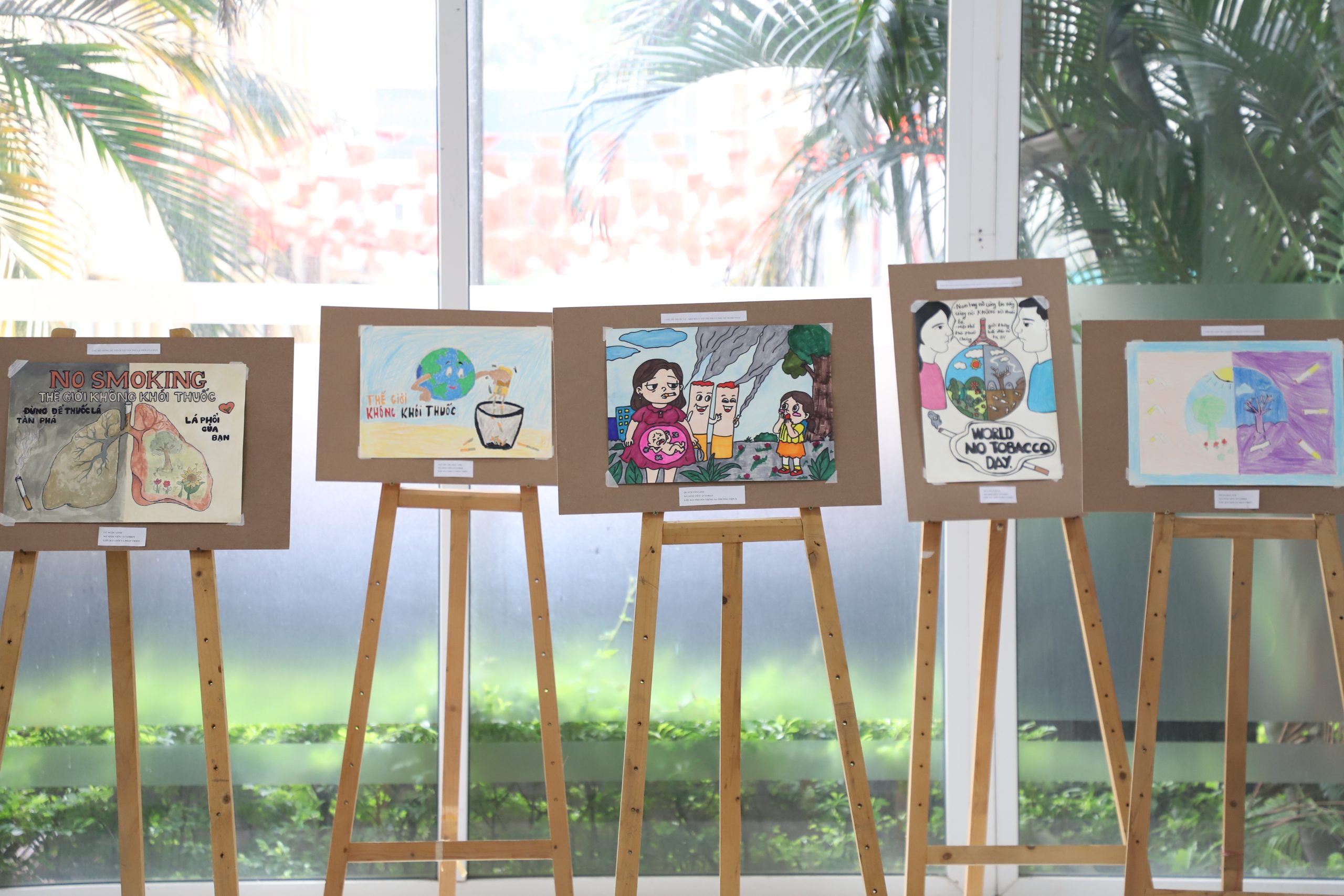 Một trong những điểm nhấn đầu tiên và ấn tượng nhất của chiến dịch là Triển lãm tranh “Vì một Học viện Phụ nữ Việt Nam không khói thuốc”, đã được tổ chức từ ngày 19/5 đến 31/5/2025 tại sảnh tầng 1 nhà A2. Với khoảng 40 bức tranh được thể hiện đầy sáng tạo, sinh động và mang thông điệp mạnh mẽ, triển lãm không chỉ là sân chơi nghệ thuật cho sinh viên mà còn là phương tiện truyền thông sâu sắc, lay động nhận thức của người xem về tác hại của thuốc lá và ý nghĩa của một môi trường học tập không khói thuốc.