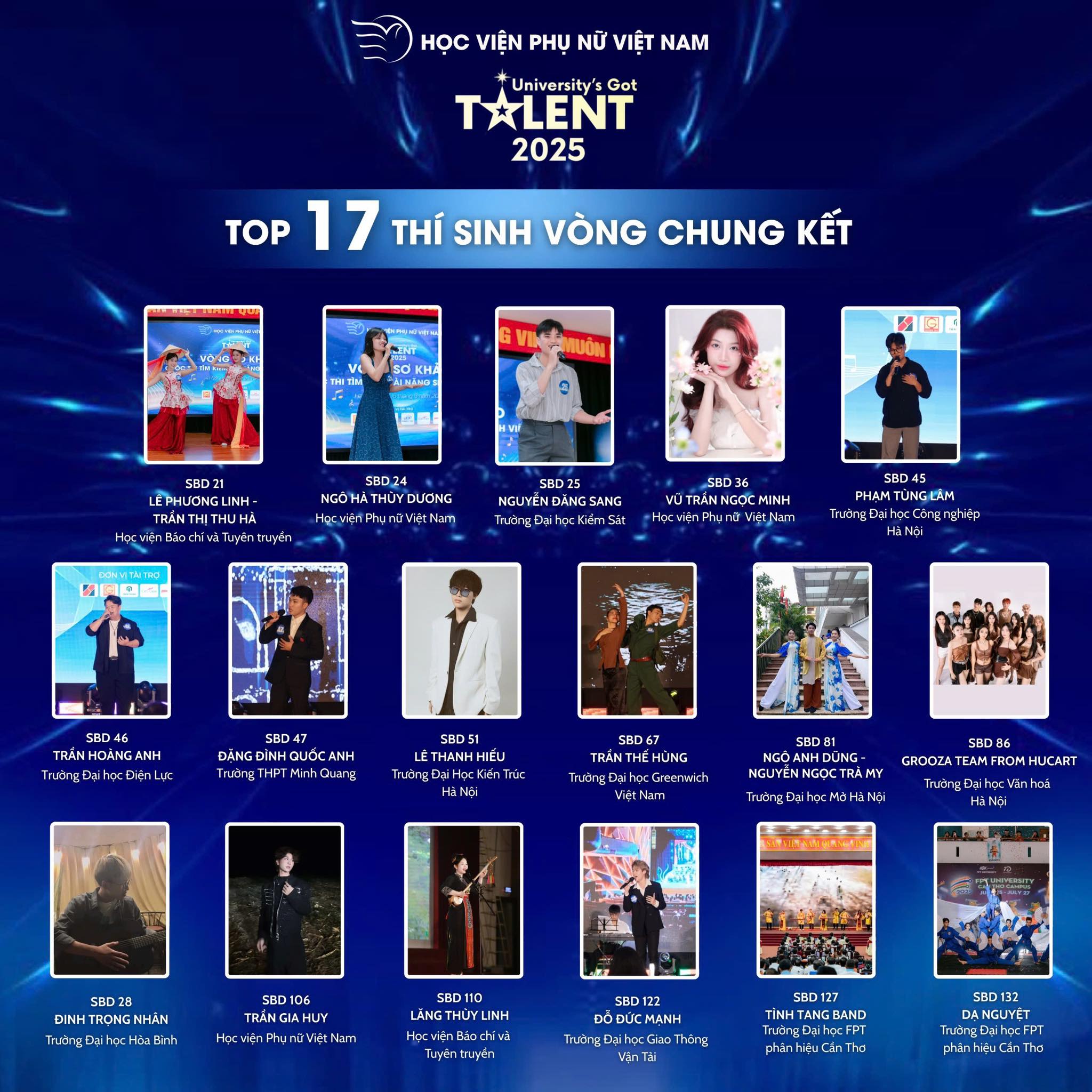 🏆 TOP 17 THÍ SINH/ NHÓM THÍ SINH XUẤT SẮC NHẤT UNIVERSITY’S GOT TALENT 2025