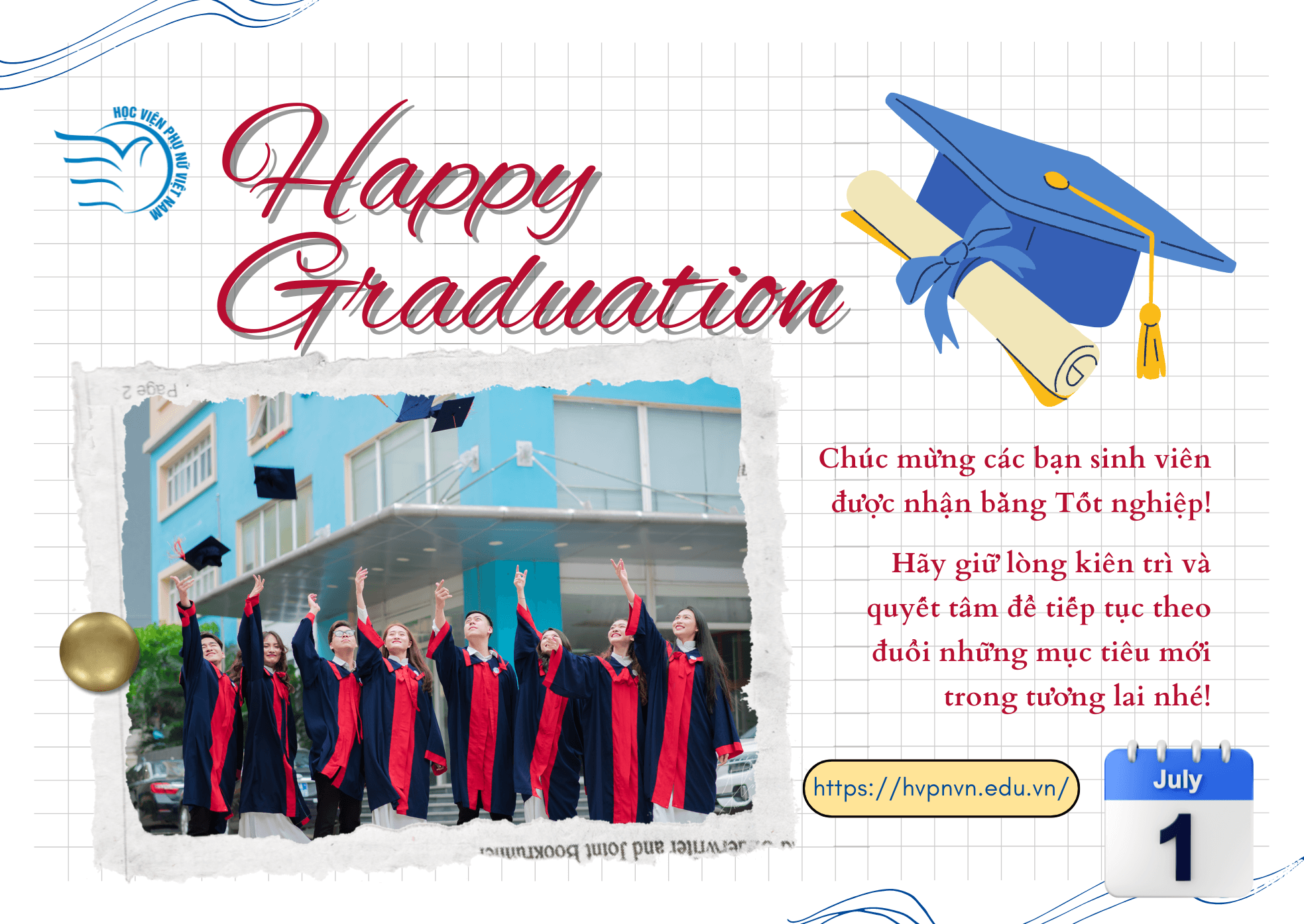 Học viện Phụ nữ Việt Nam trân trọng chào đón quý phụ huynh, các bạn học viên, sinh viên cùng đến tham dự Lễ bế giảng và trao bằng tốt nghiệp đợt 2 năm 2024 để cùng chúc mừng và nhân lên niềm vui, sự tự hào về thế hệ tương lai của đất nước.