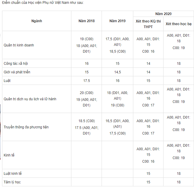 - Tên trường: Học viện Phụ nữ Việt Nam