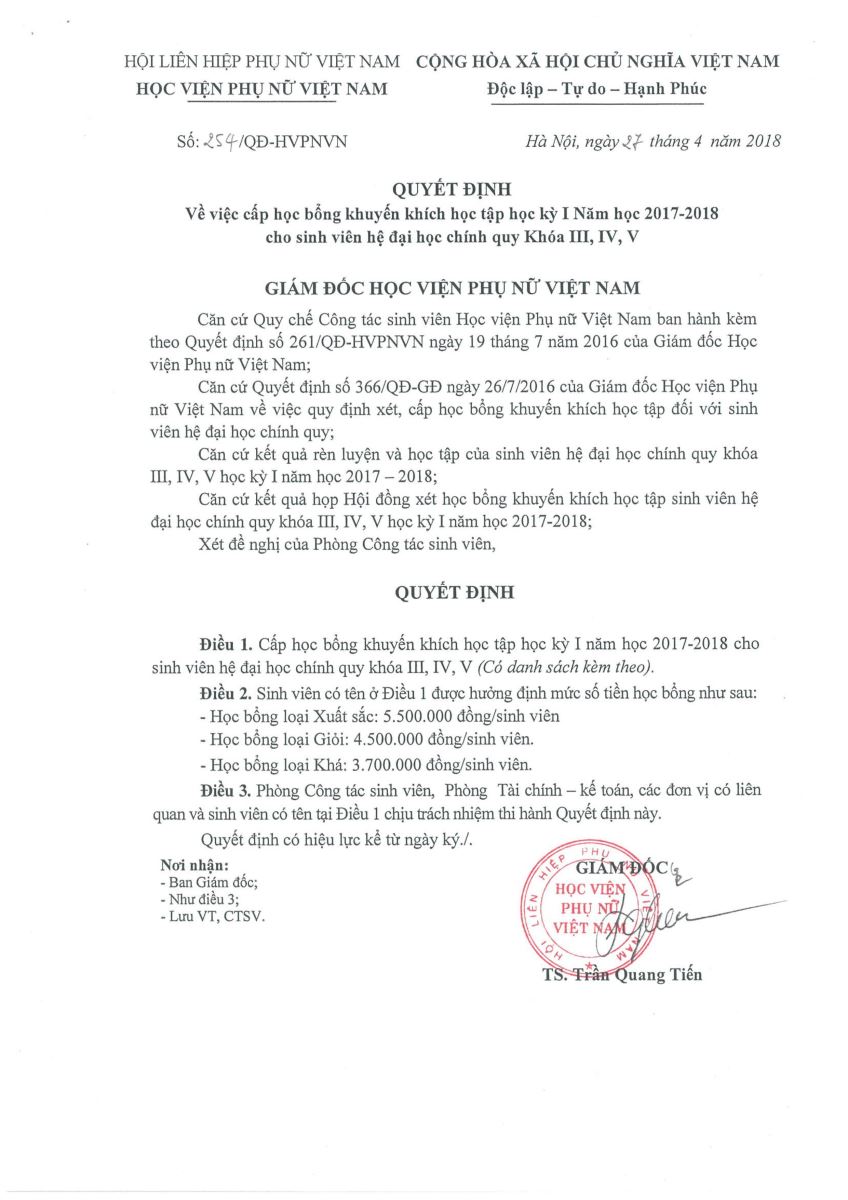Công bố Danh sách sinh viên đạt học bổng khuyến khích Học kỳ I năm học 2017 – 2018