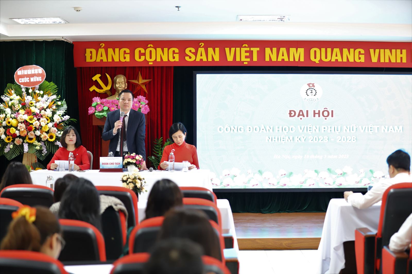 Đại hội Công đoàn Học viện Phụ nữ Việt Nam nhiệm kỳ 2023-2028 nhằm tổng kết hoạt động, đánh giá phong trào công đoàn nhiệm kỳ 2017-2022, đề ra phương hướng nhiệm vụ và bầu ra Ban Chấp hành công đoàn nhiệm kỳ 2023-2028.