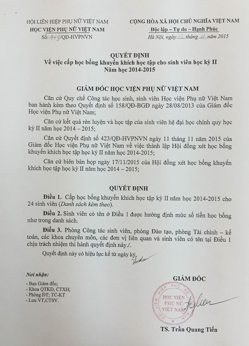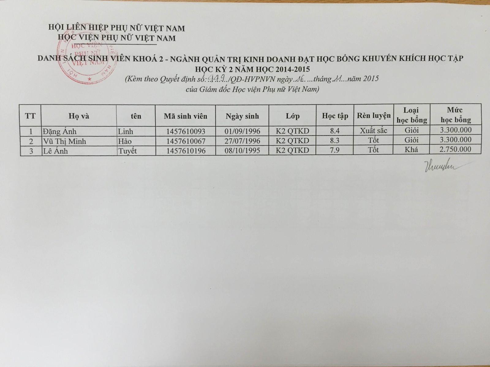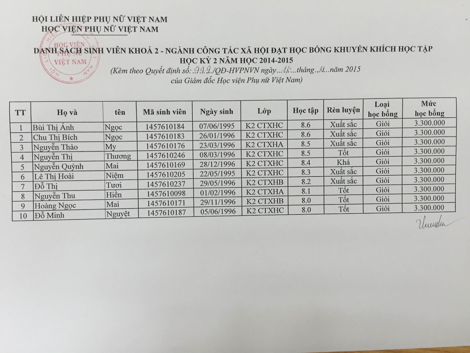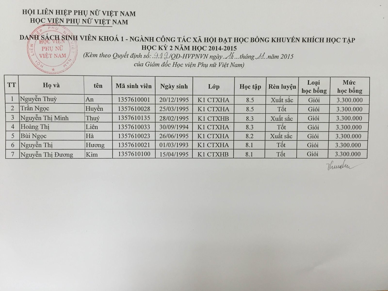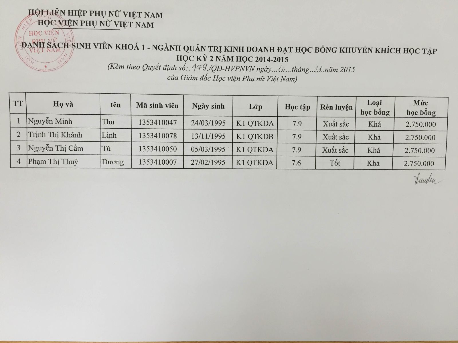 Tin tứcDanh sách sinh viên đạt học bổng khuyến khích học tập học kỳ 2 năm học 2014-2015 Posted on Tháng Mười Một 18, 2015 by admin(full) 18 Th11 admin(full) Thông báo và mẫu đơn đăng ký học song ngành, học vượt, học chậm, học cải thiện, học lại học kỳ 2 năm học 2015-2016THÔNG BÁO MỘT SỐ NỘI DUNG VỀ TUYỂN DỤNG HỢP ĐỒNG NĂM 2015
