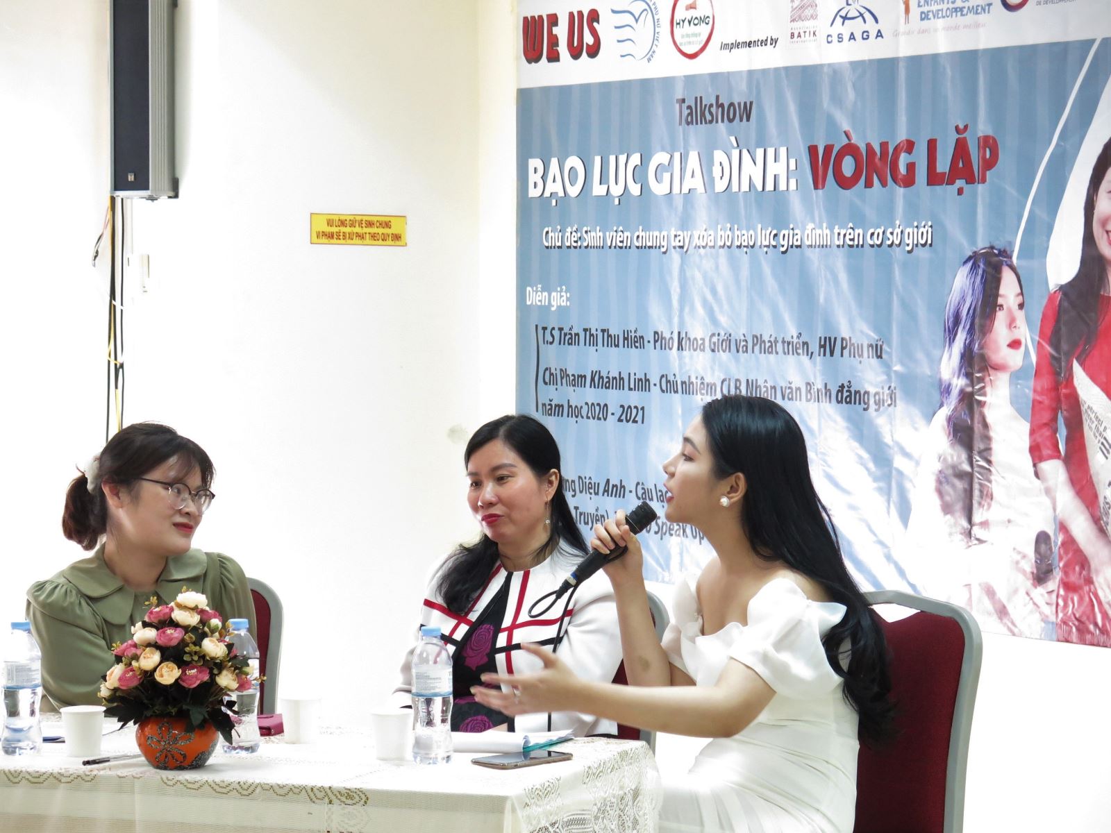 Tham gia sự kiện có TS. Trần Thị Thu Hiền – Phó khoa Giới và Phát triển tại Học viện Phụ nữ Việt Nam; Bạn Phạm Khánh Linh – Chủ nhiệm Câu Lạc Bộ ‘Nhân Văn – Bình Đẳng Giới’ (Club Humanities – Gender Equality: CHGE) – Đại học Khoa học xã hội và nhân văn; MC Trương Diệu Anh – thành viên câu lạc bộ AMC (Học viện Báo chí và Tuyên Truyền), từng được lọt vào top 10 cuộc thi Speak Up 2021.