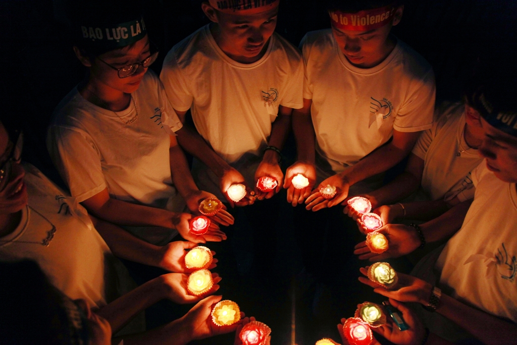 Sinh viên khoa Giới và Phát triển tham gia Buổi lễ thắp nến phản đối bạo lực gia đình