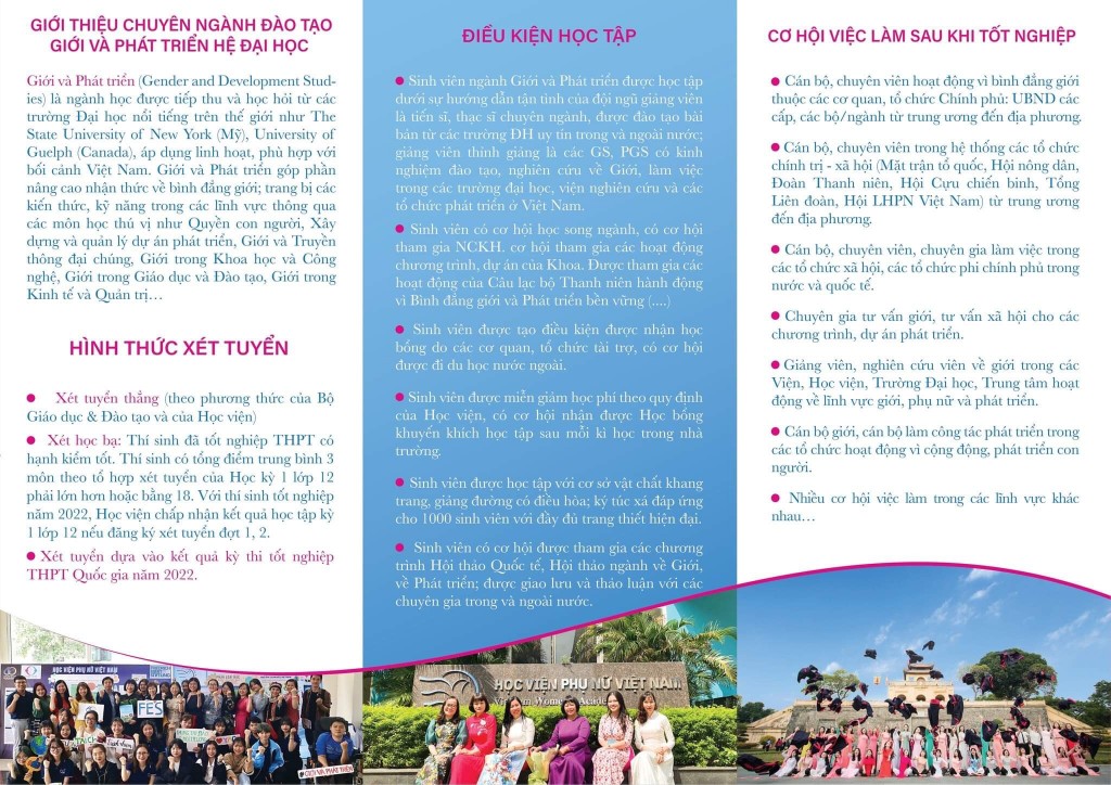 Học Viện Phụ Nữ Việt Nam là cơ sở đầu tiên và duy nhất tại Việt Nam đào tạo cử nhân ngành Giới và Phát triển