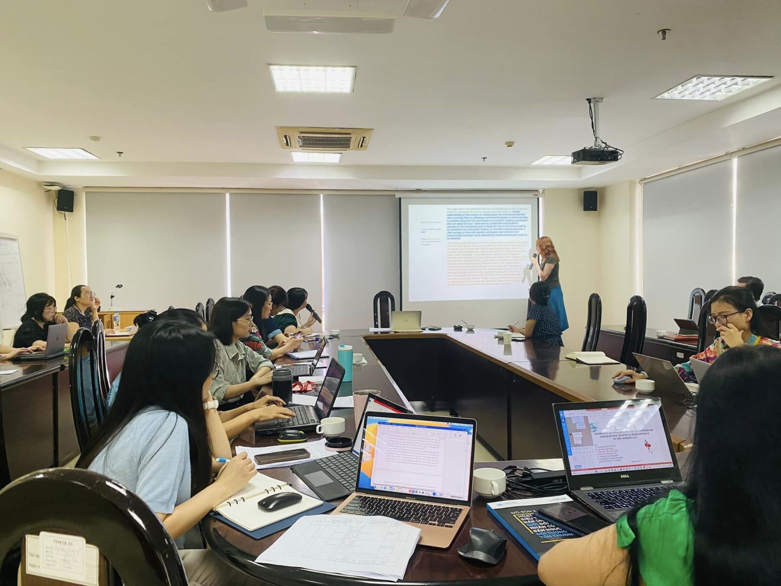 Ngày 30/5/2023 PGS.TS. Jill.M.Chonody  đã chia sẻ chủ đề “Phương pháp nghiên cứu và kinh nghiệm viết bài báo quốc tế” tại buổi tập huấn dành cho các giảng viên, nghiên cứu viên Học viện và một số giảng viên trường đại học khác. Với kinh nghiệm nghiên cứu lâu năm, là tác giả của nhiều cuốn sách, chương sách và gần 100 bài báo quốc tế, GS đã có nhưng chia sẻ rất hữu ích, giúp cho giảng viên, nghiên cứu viên có thêm kinh nghiệm trong việc viết bài quốc tế.