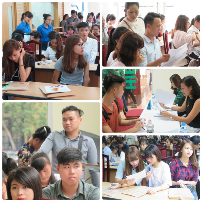 Ngay từ đầu giờ sáng, tân sinh viên ở khắp nơi trong cả nước đã có mặt tại trường để làm thủ tục nhập học. Mặc dù có chút lo lắng, bỡ ngỡ khi lần ��ầu bước vào giảng đường đại học nhưng tất cả các em đều tràn đầy háo hức và sự tự tin của tuổi trẻ.