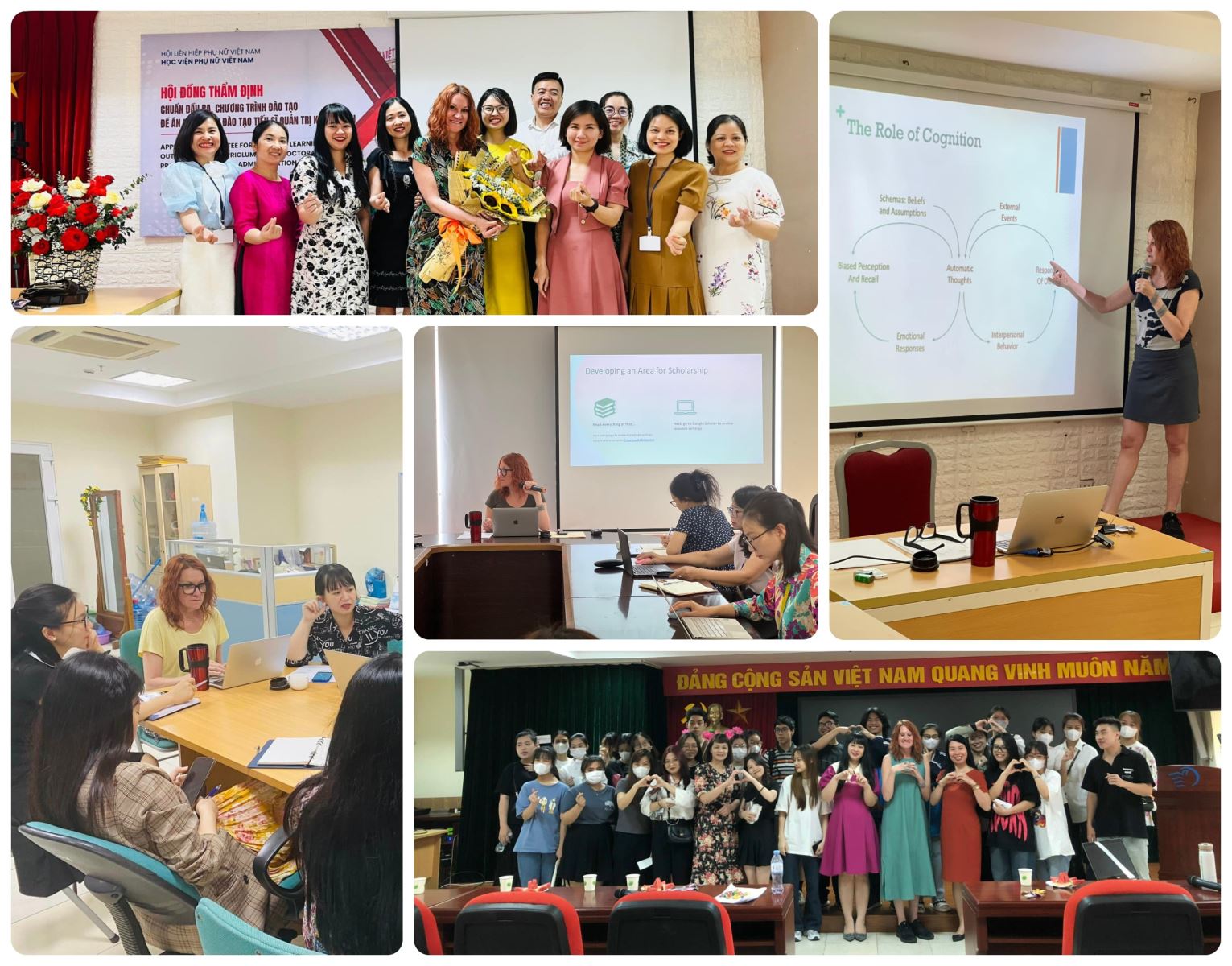 Trong 6 tuần làm việc tại Học viện, bà Jill Chonody đã có 8 buổi chia sẻ, nói chuyện chuyên đề và tập huấn cho giảng viên, học viên cao học và sinh viên các ngành CTXH, Tâm lý và Giới về các chủ đề như các mô hình can thiệp công tác xã hội, thực hành Công tác xã hội trong chăm sóc sức khỏe tâm thần, các loại rối loạn tâm thần và phương pháp điều trị, các vấn đề về bất bình đẳng giới trong xã hội và phương pháp nghiên cứu, viết bài báo quốc tế. Cụ thể là những chủ đề: Lý thuyết và can thiệp trong chăm sóc sức khoẻ tâm thần; Phương pháp đánh giá, chẩn đoán và điều trị trong chăm sóc sức khoẻ tâm thần; Bình đẳng giới và phong trào nữ quyền trên thế giới và tại Mỹ; Thực hành Công tác xã hội trong chăm sóc sức khỏe tâm thần; CTXH trong chăm sóc sức khoẻ tâm thần – Lý thuyết và can thiệp…