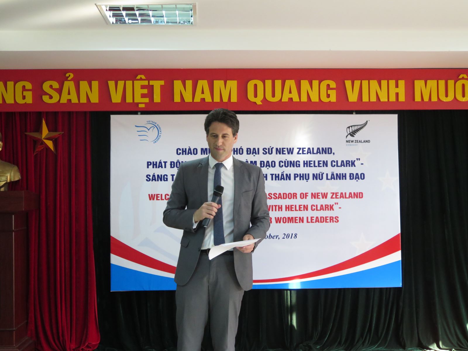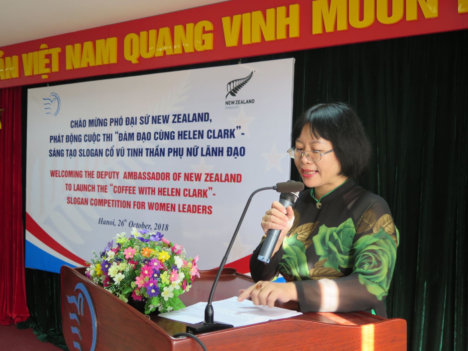 Phát biểu khai mạc sự kiện, Phó Giám đốc Dương Kim Anh cho biết: “New Zealand có mức tiến bộ bình đẳng giới và phát triển con người rất cao. Nhiều năm liền, New Zealand nằm trong Top 10 các nước có nỗ lực tốt nhất trong thu hẹp Khoảng cách giới (GII), Top 10 các nước có Chỉ số phát triển con người (HDI) cao nhất. Là học viện đi đầu về đào tạo các ngành học thúc đẩy bình đẳng giới và phát triển bền vững, Học viện Phụ nữ Việt Nam hân hạnh được đón ngài Phó Đại sứ Keith Conway và cán bộ truyền thông Đại sứ quán New Zealand tại Việt Nam tới thăm Học viện, giới thiệu về bình đẳng giới ở New Zealand và chia sẻ thông tin về Cuộc thi “Đàm đạo cùng Helen Clark” – Sáng tạo slogan cổ vũ tinh thần phụ nữ lãnh đạo nhân dịp nguyên thủ tướng New Zealand – bà Helen Clark tới thăm Việt Nam vào đầu tháng 11/2018. Đề nghị sinh viên Học viện Phụ nữ Việt Nam nhiệt liệt hưởng ứng cuộc thi và sáng tạo được nhiều thông điệp truyền thông có ý nghĩa”.