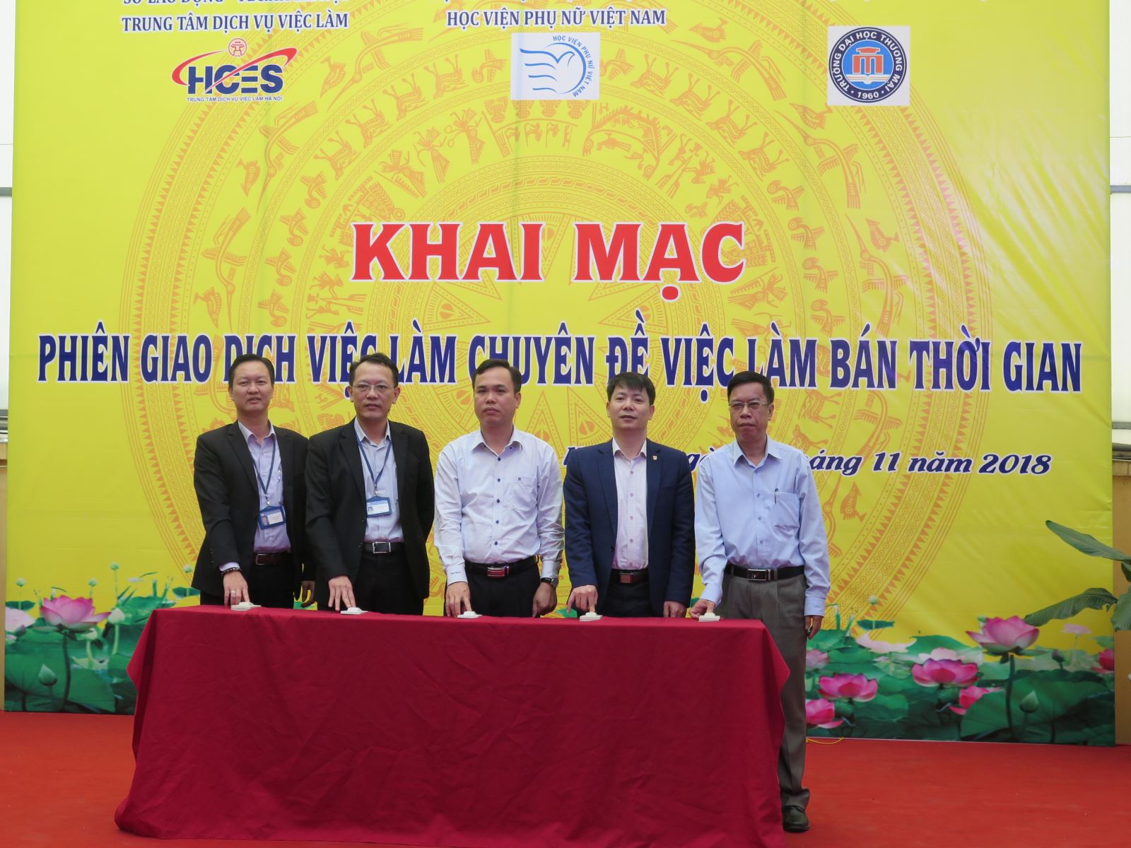 TS. Trần Quang Tiến, Bí thư Đảng ủy, Giám đốc Học viện Phụ nữ Việt Nam,Ông Nguyễn Hồng Dân – PGĐ Sở LĐTBXH Hà Nộiông ông Tạ Văn Thảo – Phó Giám đốc Trung tâm Dịch vụ Việc làm Hà Nội, lãnh đạo Phòng Đào tạo, phòng Công tác sinh viên và sinh viên của các trường Học viện Phụ nữ Việt Nam, Đại học Thương Mại…đã tham dự sự kiện