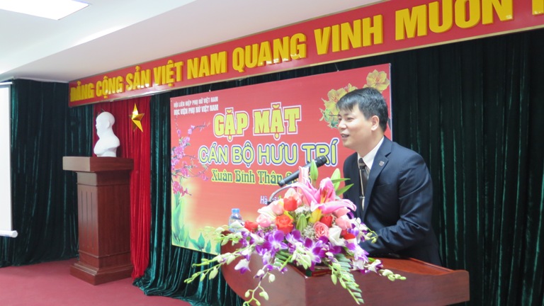 Phát biểu tại buổi gặp mặt, Giám đốc Học viện, TS. Trần Quang Tiến đã bày tỏ niềm vui mừng được đón các đồng chí nguyên là cán bộ, giảng viên,nghiên cứu viên, nhân viên đã nghỉ hưu về dự buổi gặp mặt cuối năm và chúc tết nhân dịp Xuân Bính Thân 2016. Giám đốc trân trọng gửi lời chúc sức khoẻ, hạnh phúc tới các cán bộ hưu trí cùng toàn thể gia đình nhân dịp ngày Tết cổ truyền sắp đến.