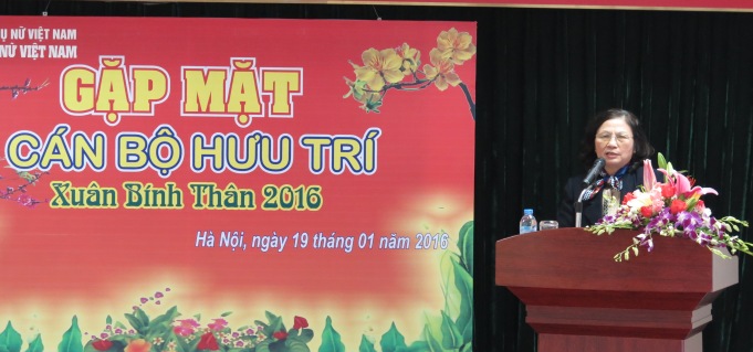 Vui mừng trở lại Học viện sau thời gian công tác biệt phái tại tỉnh Vĩnh Long, Phó Chủ tịch Hội LHPN VN,TS.Nguyễn Thị Thu Hà bày tỏ niềm xúc động khi được trở lại mái trường xưa, đượcsống trong tình cảm thương mến cùng các thế hệ đi trước và đồng nghiệp hiện tại. Đồng chí cũng gửi lời cảm ơn các cán bộ hưu đã luôn ủng hộ, động viên, tận tình chỉ bảo cho từng bước đường phấn đấu của cá nhân và sự phát triển chung của Học viện, của Hội LHPN Việt Nam. Nhân dịp đầu xuân Bính Thân 2016, đồng chí kính chúc sức khỏe, hạnh phúc đến toàn thể các cán bộ đã nghỉ hưu cũng như các đồng nghiệp đã và đang phấn đấu xây dựng Học viện Phụ nữ Việt Nam ngày càng vững vàng, bề thế hơn.