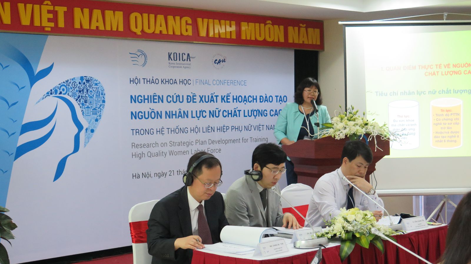 Dự án: Nghiên cứu xây dựng kế hoạch đào tạo nguồn nhân lực nữ chất lượng cao trong hệ thống Hội LHPN Việt Nam (giai đoạn 2016-2020) do Học viện Phụ nữ Việt Nam phối hợp với Đại học Chung Ang – Hàn Quốc thực hiện  (Cơ quan Hợp tác Quốc tế Hàn Quốc (KOICA) tài trợ) được thực hiện nhằm mục tiêu: Nâng cao năng lực nghiên cứu cho Học viện thông qua việc triển khai nghiên cứu về nguồn nhân lực nữ chất lượng cao; Góp phần cải thiện năng lực xây dựng chính sách và thiết kế đào tạo; Hỗ trợ xây dựng kế hoạch chiến lược đào tạo nhân lực nữ chất lượng cao.