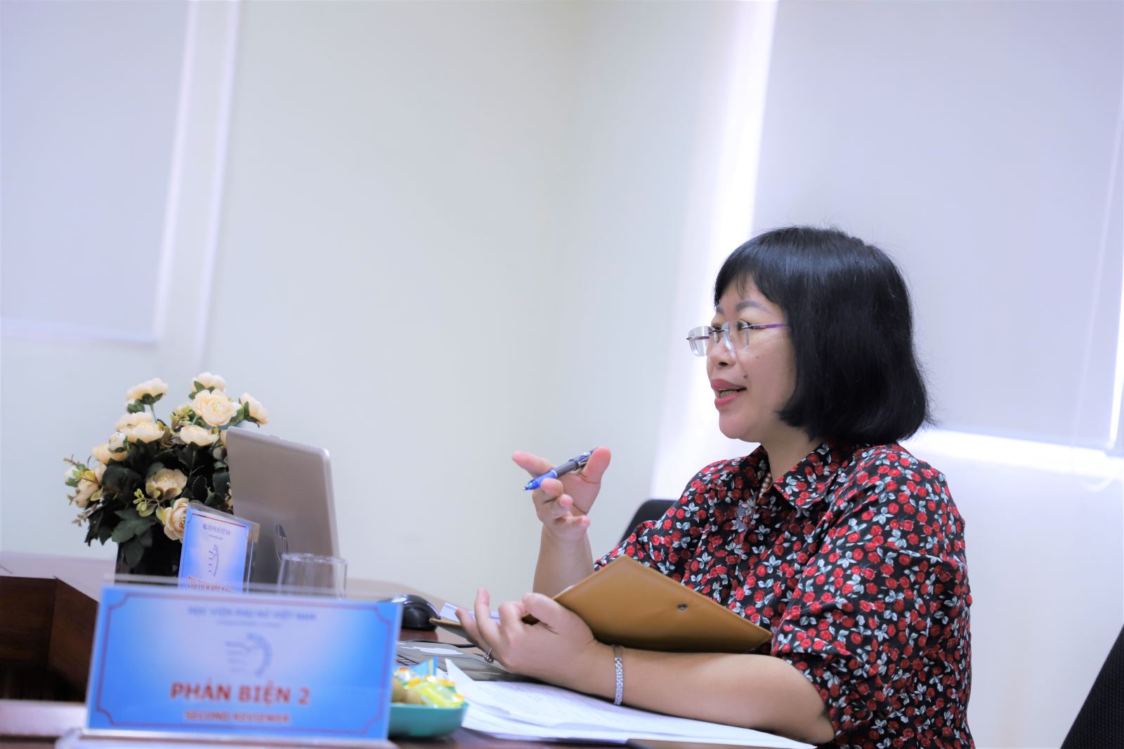 Chủ tịch hội đồng là TS. Dương Kim Anh – PGĐ Học viện PNVN; PGS.TS. Trần Thị Ngân – Trường ĐH Quốc tế – ĐH Quốc gia Hà Nội là phản biện 1; PGS.TS. Nguyễn Hữu Quỳnh – Khoa CNTT – Trường Đại học Thủy Lợi là phản biện 2; Uỷ viên hội đồng là ThS. Hà Thị Oanh – Phó Trưởng ban DTTG, TW Hội LHPN Việt Nam; ThS. Trần Xuân Quỳnh – Viện CNTT, HVPNVN là Ủy viên, Thư ký hội đồng.