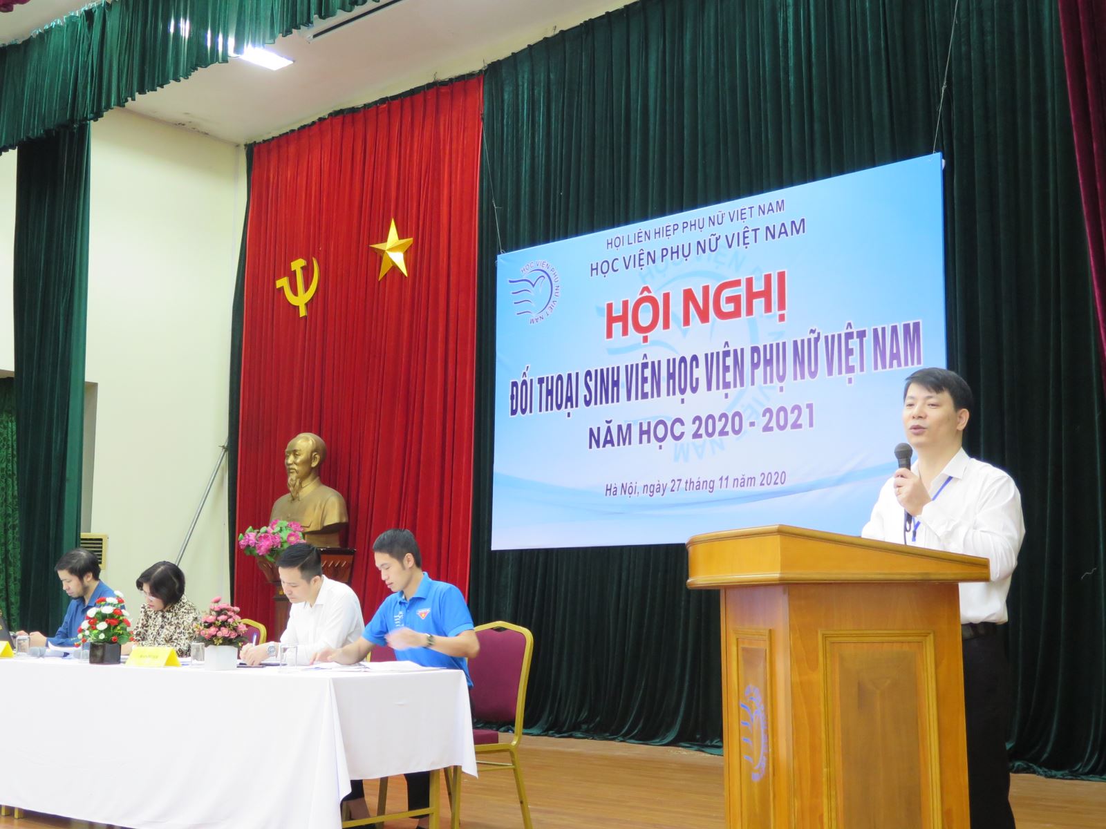 Với phương châm lấy người học làm trung tâm, Hội nghị đối thoại với sinh viên năm học 2020 – 2021 của Học viện Phụ nữ Việt Nam đã tiếp tục phát huy tính chủ động, sáng tạo và tinh thần trách nhiệm của sinh viên. Phát biểu kết luận tại hội nghị, Giám đốc Trần Quang Tiến hoan nghênh các sinh viên mạnh dạn nêu ý kiến và tham gia trao đổi sôi nổi, có ý thức tự giác và thẳng thắn bày tỏ quan điểm cá nhân về vấn đề liên quan đến quyền lợi học tập của mình. Học viện ghi nhận toàn bộ những ý kiến đã trao đổi và yêu cầu các đơn vị chức năng nhanh chóng tìm giải pháp khắc phục những tồn tại, tạo điều kiện tốt nhất cho sinh viên học tập. Giám đốc Trần Quang Tiến cũng làm rõ vai trò, trách nhiệm của sinh viên trong công tác phối hợp với nhà trường cải thiện và nâng cao chất lượng của môi trường học tập.