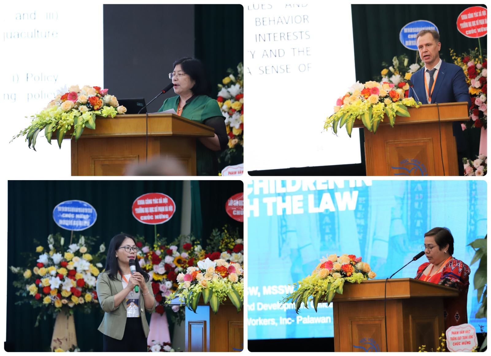 Các diễn giả đã chia sẻ kinh nghiệm lý luận, thực tiễn thông qua các nghiên cứu định tính, định lượng về hoạt động công tác xã hội và thực hành công tác xã hội thực tế trong bối cảnh hiện nay. Các bài tham luận, trao đổi đa dạng về các vấn đề: