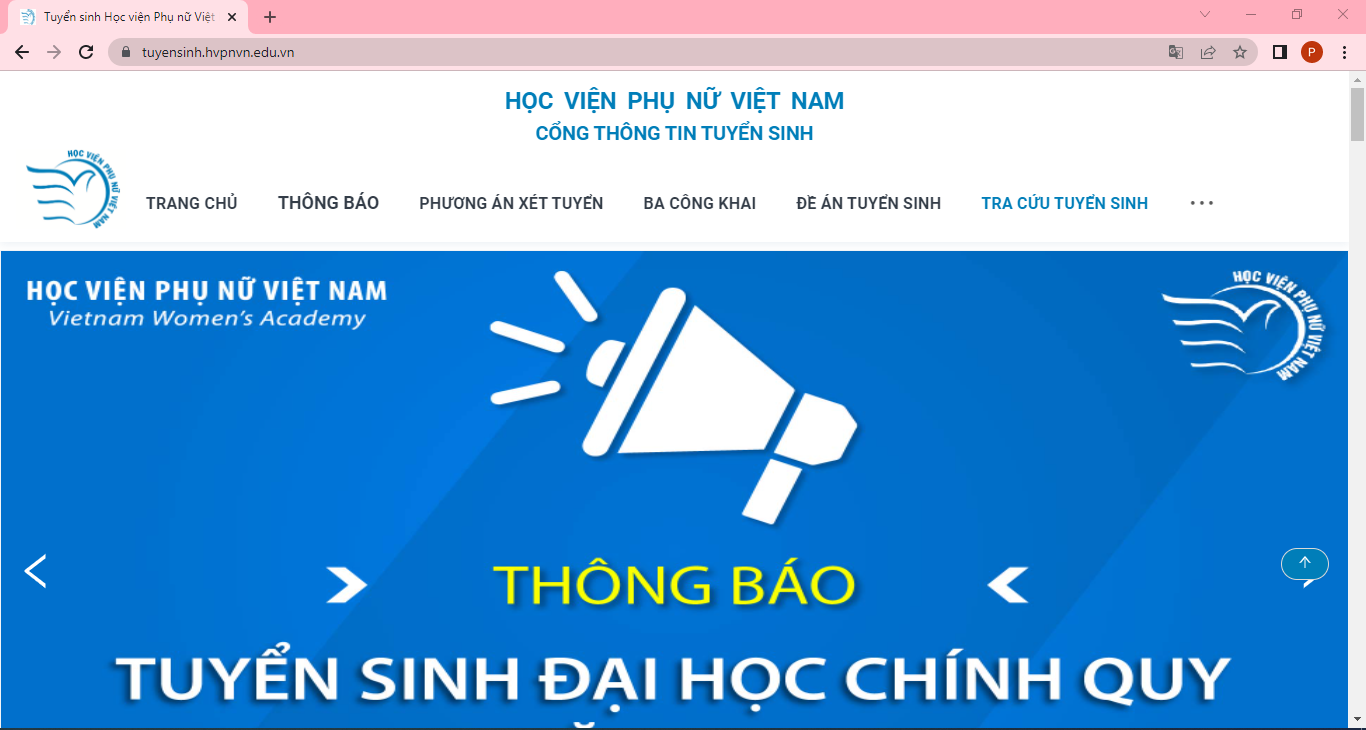 Bước 1: Truy cập vào website Tuyển sinh của Học viện Phụ nữ Việt Nam: