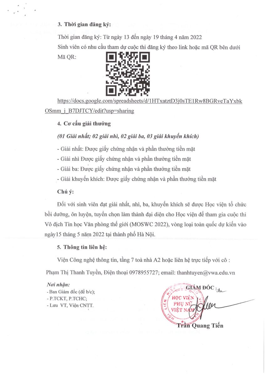 Ngày 11 tháng 10 năm 2025, sinh viên ngành Giới và Phát triển, Học viện Phụ nữ Việt Nam đã tham gia Cuộc thi “Đại sứ Bình đẳng giới – Tiếng nói của giới trẻ trong hành trình thay đổi” do Trung tâm Hỗ trợ Phụ nữ phát triển (CWD) tổ chức. Hoạt động diễn ra trong không khí sôi nổi, sáng tạo và đầy ý nghĩa, góp phần lan tỏa mạnh mẽ thông điệp “Bình đẳng và Hạnh phúc”. Với phần thể hiện ấn tượng, hai đội thi của Khoa Giới và Phát triển đã xuất sắc giành thứ hạng cao, khẳng định tri thức, bản lĩnh và tinh thần tiên phong của sinh viên Học viện trong hành trình thúc đẩy bình đẳng giới.