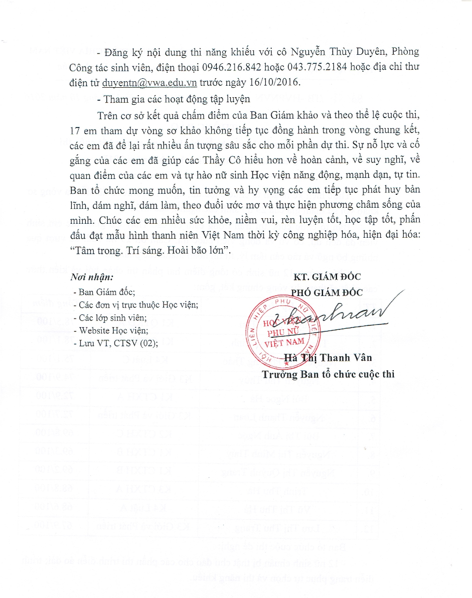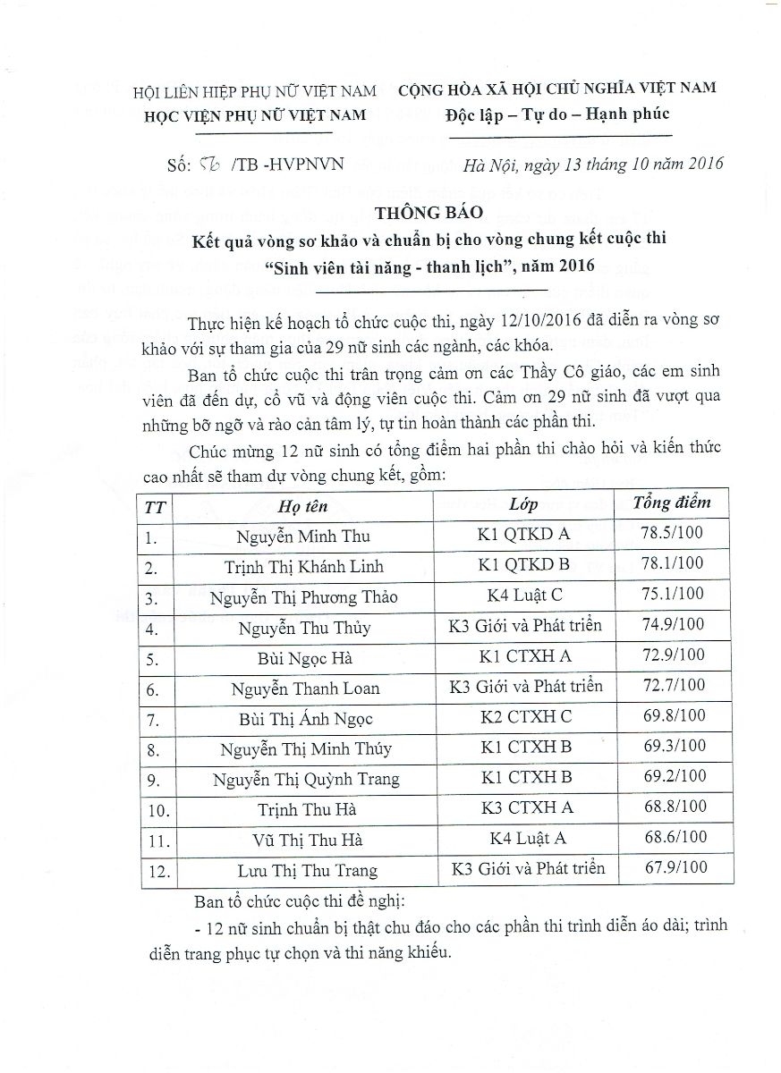 Kết quả Vòng Sơ khảo cuộc thi: Sinh viên tài năng thanh lịch 2016