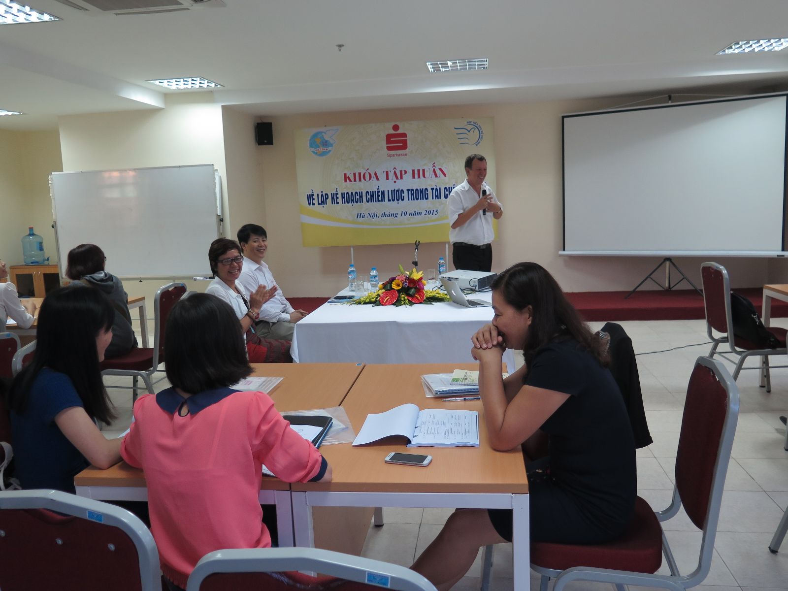 Phát biểu khai giảng khóa học ông Joerg Teumer hi vọng khóa học sẽ là một điểm hẹn ý nghĩa để đại diện các tổ chức, giảng viên, các học viên cùng chia sẻ kinh nghiệm tổ chức, hợp tác, phát triển, đẩy mạnh dự án Tài chính vi mô, đây cũng là cơ hội để hỗ trợ Học viện Phụ nữ Việt Nam phát triển mô hình Trung tâm Đào tạo Tài chính vi mô hướng đến mục tiêu chiến lược của Hội LHPN Việt Nam – Thành lập một ngân hàng hỗ trợ phụ nữ cải thiện đời sống.