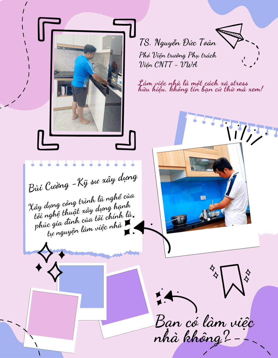 Trong quá trình thực hiện dự án, nhóm đã trao đổi, tìm hiểu thông tin của các nhân vật ở nhiều vị trí khác nhau trong xã hội về vấn đề làm việc nhà. Dưới đây là những chia sẻ của các nhân vật là giảng viên, nhà quản lý, Chủ doanh nghiệp, nông dân, nhà báo…về vấn đề việc nhà: