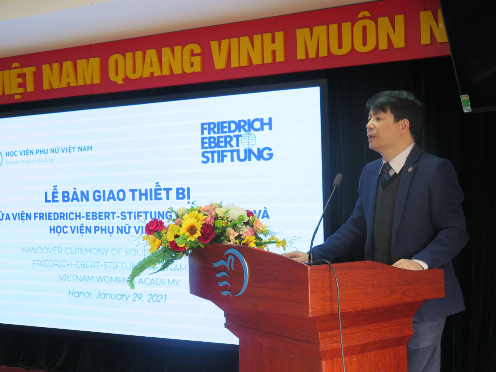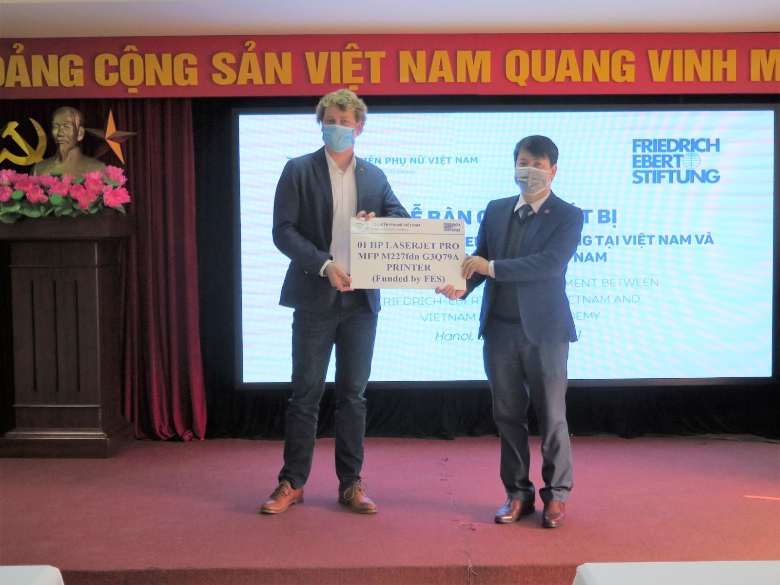 Năm 2019, Học viện Phụ nữ Việt Nam và Viện FES đã ký kết thỏa thuận hợp tác về tổ chức hội thảo, chuyên đề khoa học; hỗ trợ kỹ thuật, trang thiết bị phục vụ học tập và nghiên cứu khoa học; trao đổi chuyên gia, học giả, tiếp nhận sinh viên thực tập; hỗ trợ kết nối hợp tác với các trường Đại học, Viện nghiên cứu của Đức; kết nối chuyên gia chia sẻ về học thuật…Sau 2 năm Học viện và Viện Fes đã phối hợp tổ chức nhiều hoạt động phục vụ công tác chuyên môn của Học viện. Đặc biệt, đây là lần thứ 2 Viện Fes tiếp tục tài trợ trang thiết bị phục vụ công tác giảng dạy, nghiên cứu của Học viện.