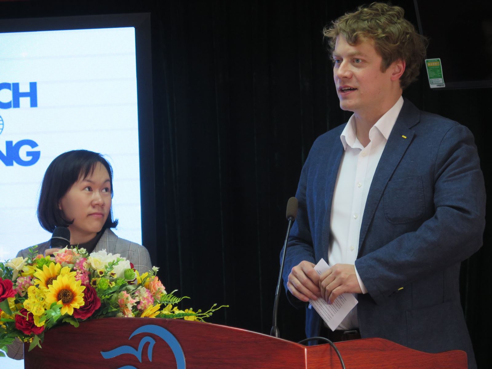 Thay mặt Viện FES, ngài Axel Blaschke bày tỏ sự vui mừng khi tiếp tục có cơ hội hợp tác, hỗ trợ Học viện với tư cách là trưởng đại diện Viện Fes tại Việt Nam. Ngài khẳng định, Viện Fes đã tìm được tiếng nói chung từ Học viện Phụ nữ Việt Nam trong các hoạt động liên quan đến phụ nữ và bình đẳng giới phù hợp với những ưu tiên trong các hoạt động của Viện hướng đến sự dân chủ – công bằng – đoàn kết trong xã hội. Viện Fes luôn hướng tới mục tiêu công bằng xã hội và điều kiện tiên quyết của mục tiêu này chính là chú trọng, quan tâm, thúc đẩy bình đẳng giới. Trong thời gian vừa qua Viện Fes đã phối hợp với khoa Luật, khoa Giới & phát triển, Viện Nghiên cứu Phụ nữ, phòng Hợp tác Quốc tế tổ chức được các hoạt động hiện thực hoá sự hỗ trợ thiết thực của Viện. Ngài Axel Blaschke chia sẻ: Chúng tôi mong muốn những món quà nhỏ của chúng tôi sẽ giúp ích cho sinh viên học viện và sau này khi các em ra trường sẽ mang theo những giá trị góp phần thúc đẩy bình đẳng giới, công bằng xã hội.