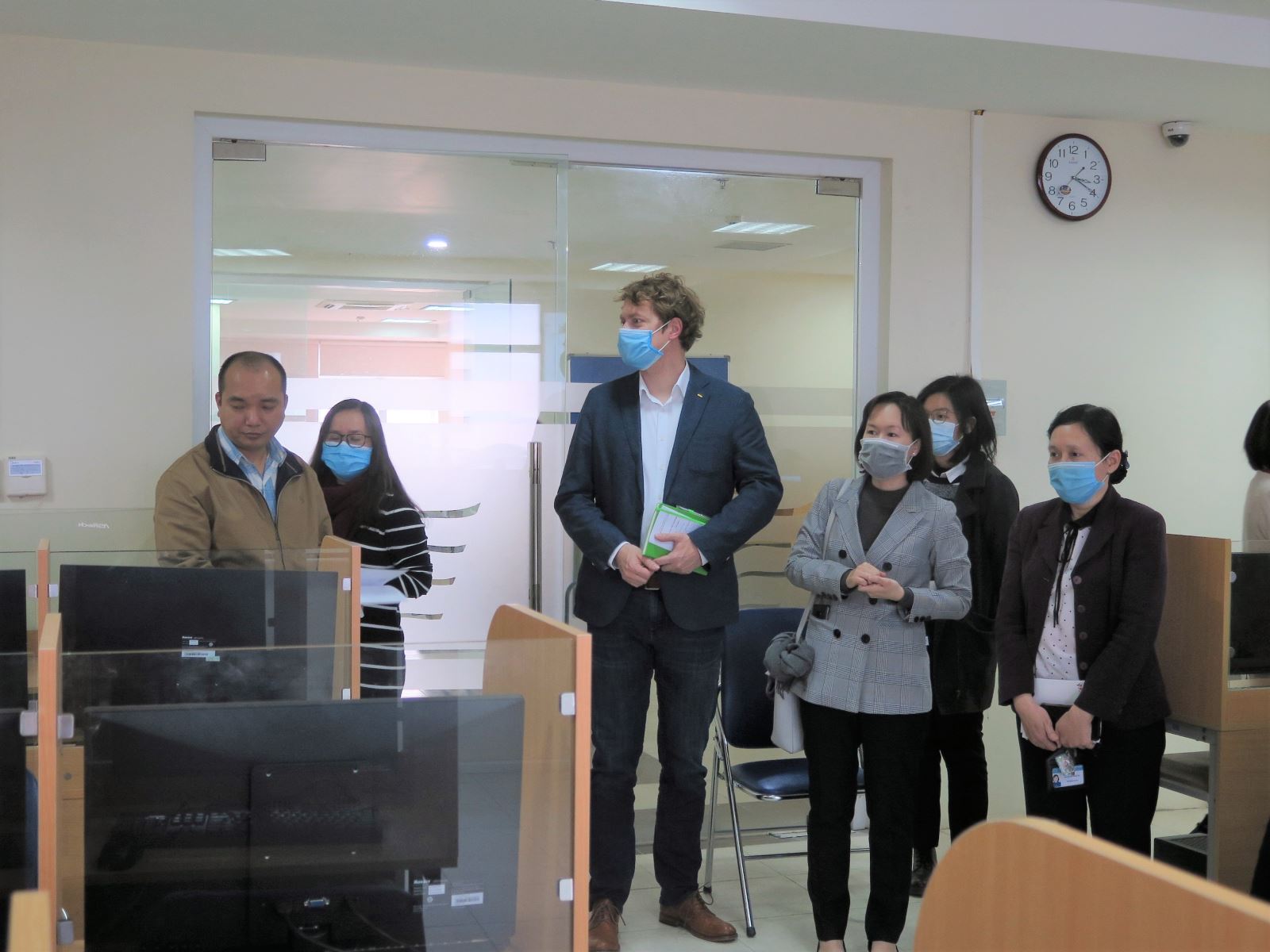 Ban Giám đốc Học viện và đại diện Viện Fes đi tham quan phòng Lab nơi lắp đặt các thiết bị mà Viện tài trợ