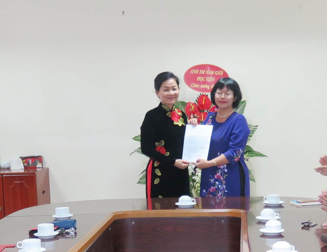 Tại buổi lễ, ThS. Phạm Thị Diễm, Trưởng Tổ chức Hành chính đã đọc Quyết định số 677/QĐ-ĐCT ngày 5/10/2017 của Đoàn Chủ tịch Hội Liên hiệp Phụ nữ Việt Nam bổ nhiệm TS. Dương Kim Anh, Trưởng khoa Giới & Phát triển giữ chức vụ Phó Giám đốc Học viện Phụ nữ Việt Nam, nhiệm kỳ 5 năm.