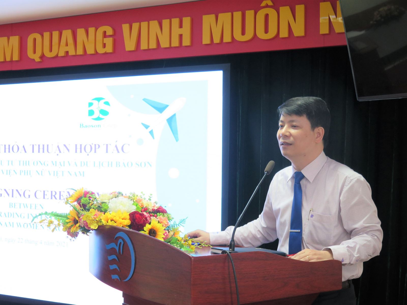Tham dự sự kiện có bà Trần Thị Hương – Phó Chủ tịch Hội LHPN Việt Nam, Chủ tịch Hội đồng Học viện Phụ nữ Việt Nam; PGS.TS Trần Quang Tiến – Giám đốc Học viện; Ông Vũ Duy An, Phó Tổng Giám đốc tập đoàn Bảo Sơn cùng đại diện lãnh đạo của đơn vị thuộc Học viện và tập đoàn.