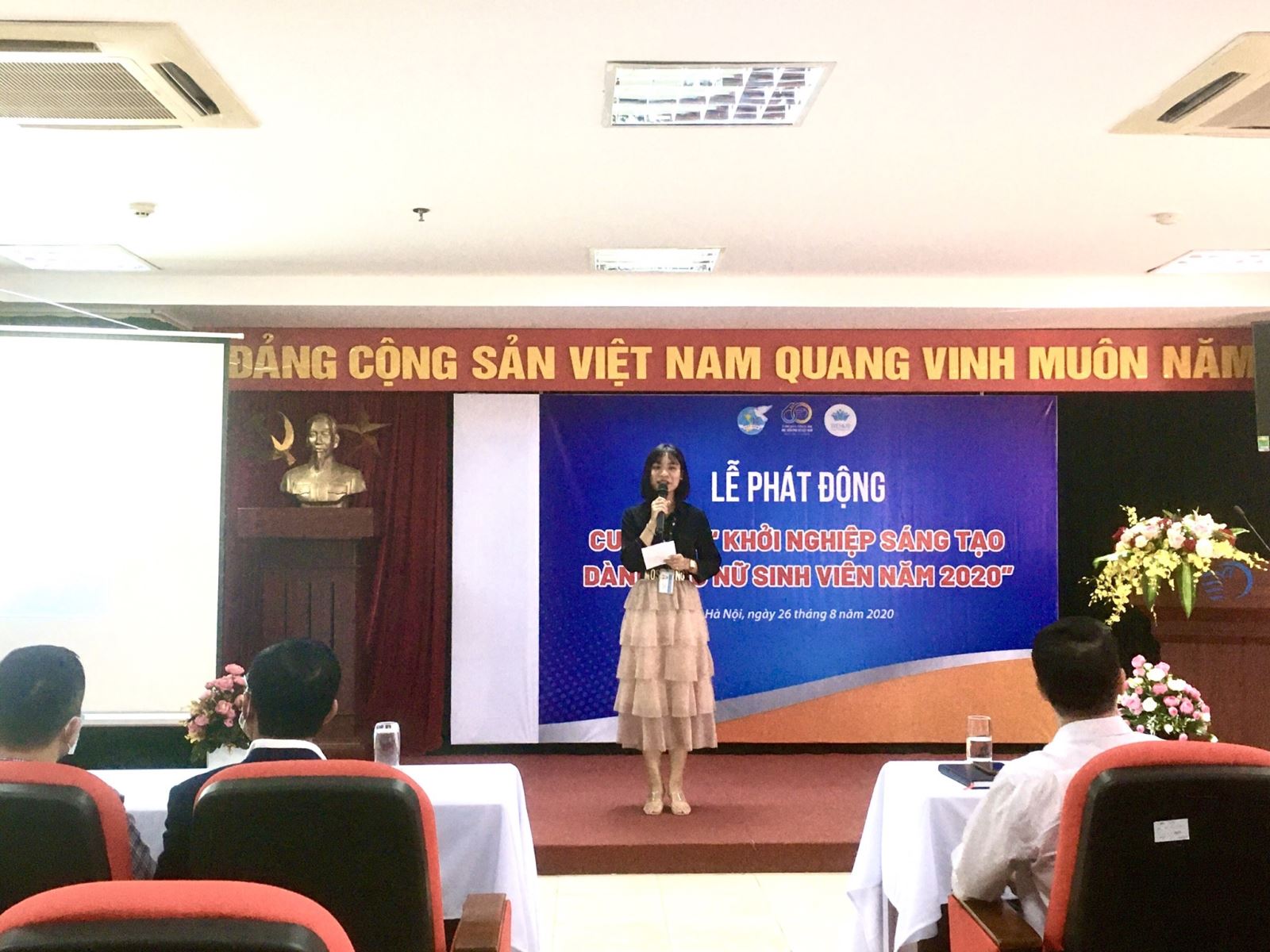 Tham dự lễ phát động có, PGS. TS. Trần Quang Tiến – Giám đốc Học viện Phụ nữ Việt Nam, đại diện các doanh nghiệp trên địa bàn Hà Nội, đại diện các trường Đại học/Cao đẳng miền Bắc, lãnh đạo các Khoa, Phòng tại Học viện, các quý báo đài đưa tin và sinh viên học viện.