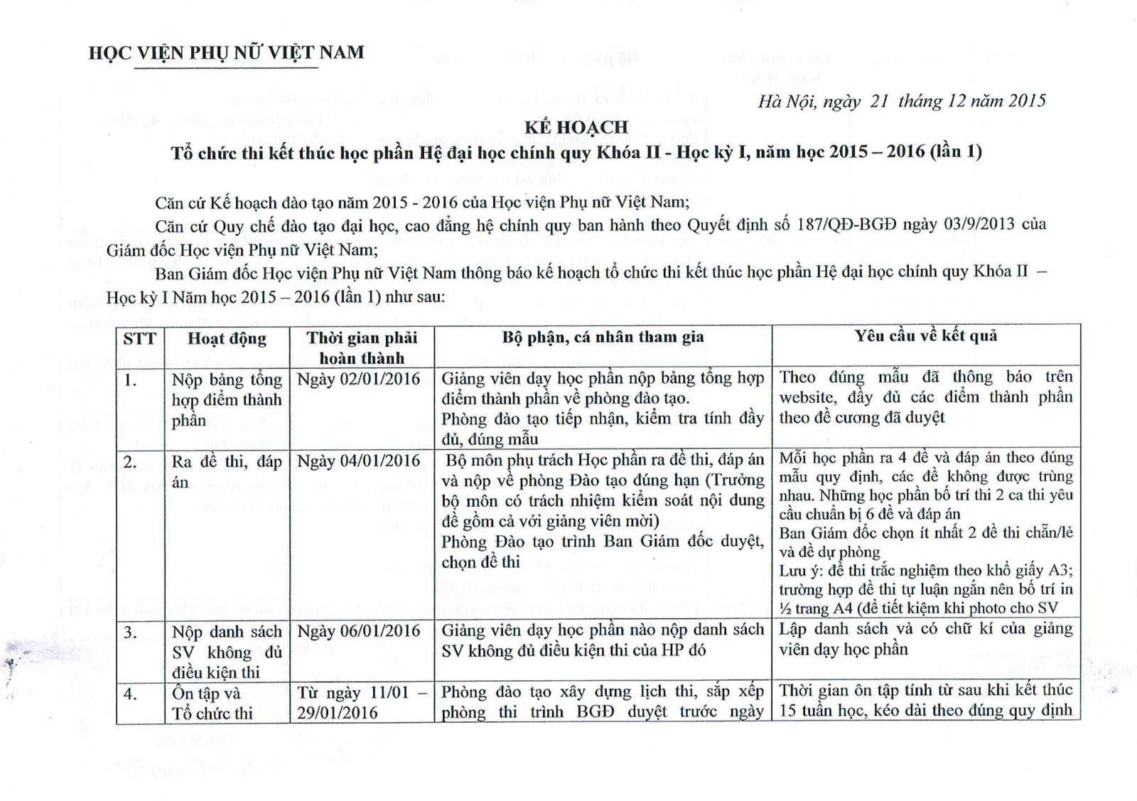 Tin tứcLịch thi khóa II – Học kỳ I, năm học 2015 – 2016 Posted on Tháng Một 4, 2016 by admin(full) 04 Th1 admin(full) Công đoàn tổ chức mừng sinh nhật cho đoàn viênHọc viện Phụ nữ Việt Nam tổ chức chia tay đồng chí Nguyễn Thị Kim Khánh