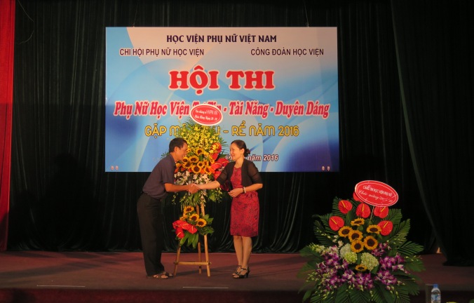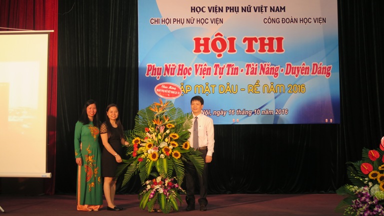 Giám đốc cảm ơn sự có mặt của các anh chị em dâu rể của học viện trong ngày vui đặc biệt hướng tới kỉ niệm 86 năm ngày thành lập Hội LHPN Việt Nam và 6 năm ngày Phụ nữ Việt Nam và trao tặng lẵng hoa tươi thắm cùng lời chúc tốt đẹp nhất đến tất cả các chị em phụ nữ có mặt tại buổi gặp gỡ.