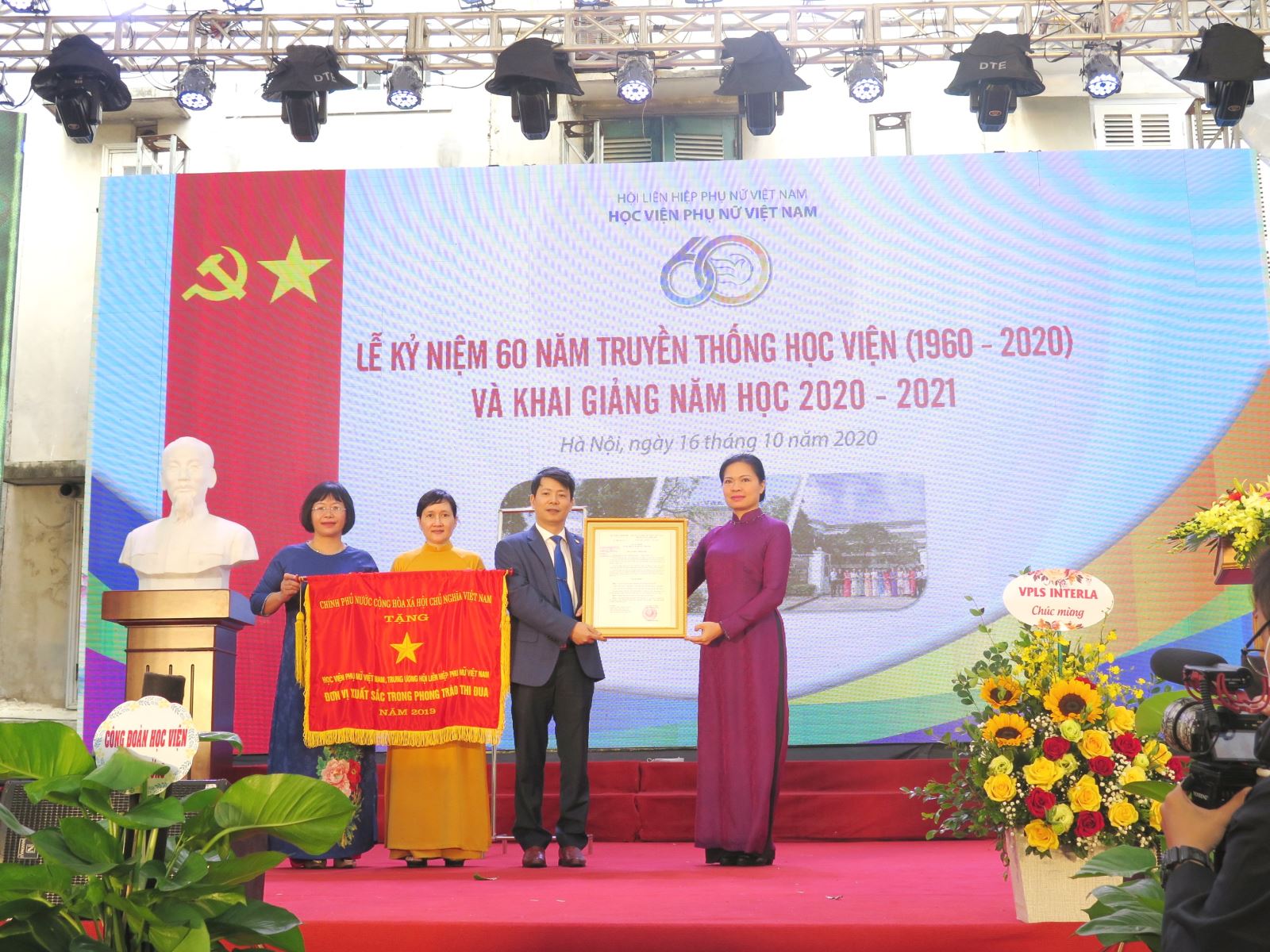 Thừa ủy quyền, đồng chí Hà Thị Nga – Chủ tịch Hội LHPN Việt Nam trao tặng Cờ thi đua của Chính phủ cho Học viện Phụ nữ Việt Nam.