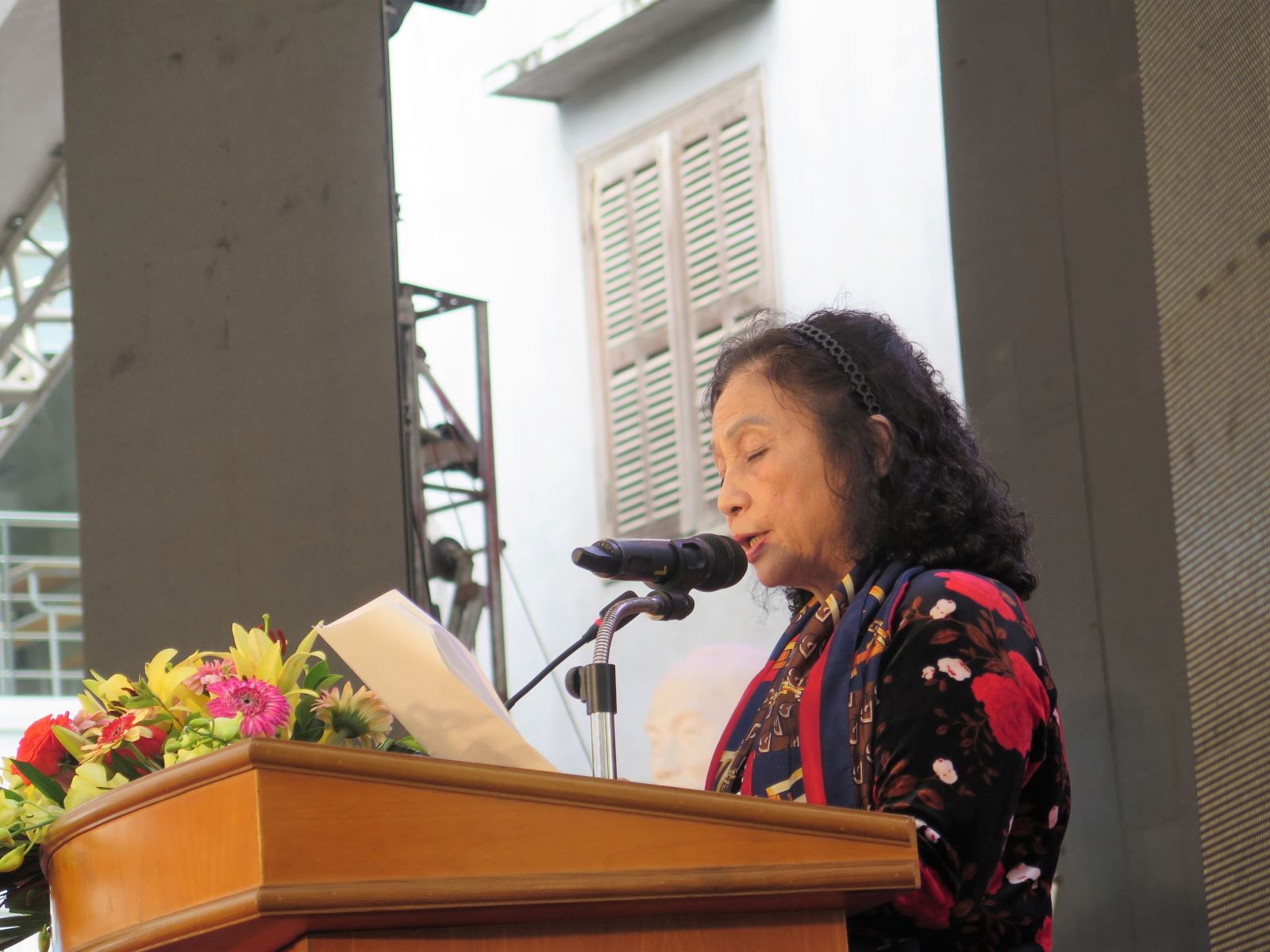 Đồng chí Trần Thị Tám – Nguyên Phó Giám đốc trường Cán bộ Phụ nữ Trung ương phát biểu tại buổi lễ