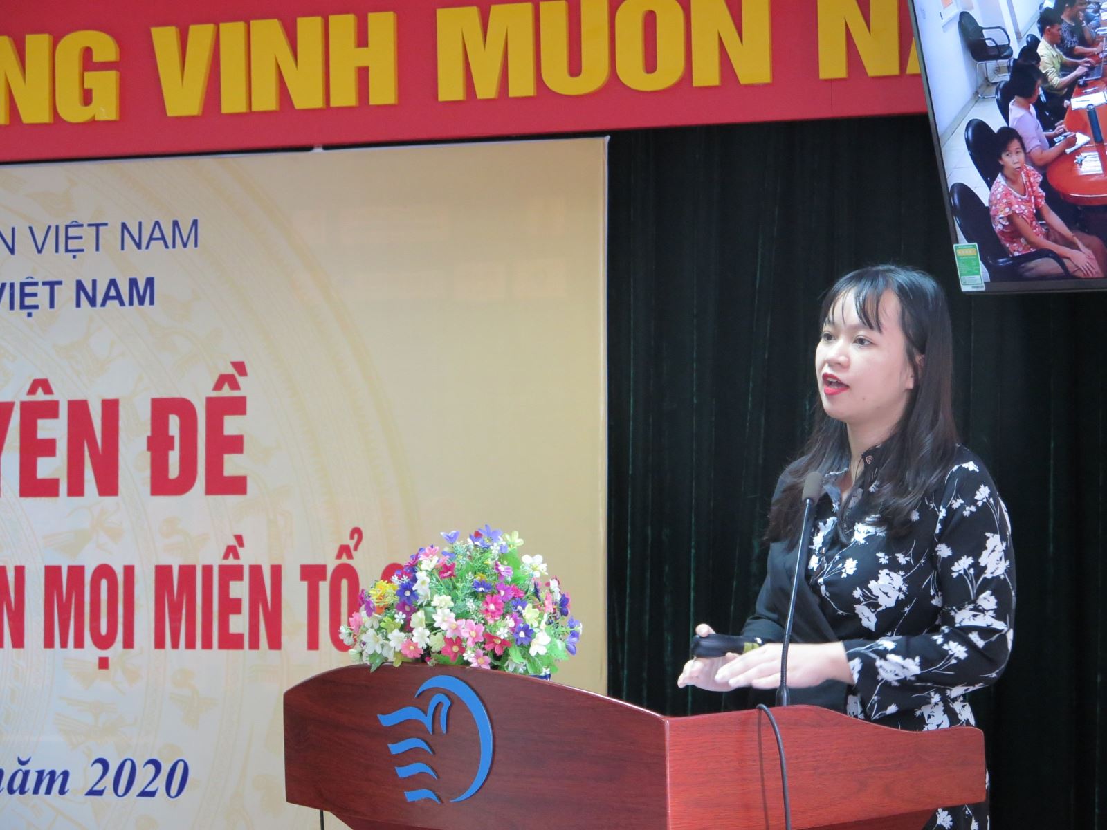 Đồng chí Tô Lan Phương – đảng viên Chi bộ 7 trình bày Tham luận về mẹ Việt Nam anh hùng Nguyễn Thị Thứ