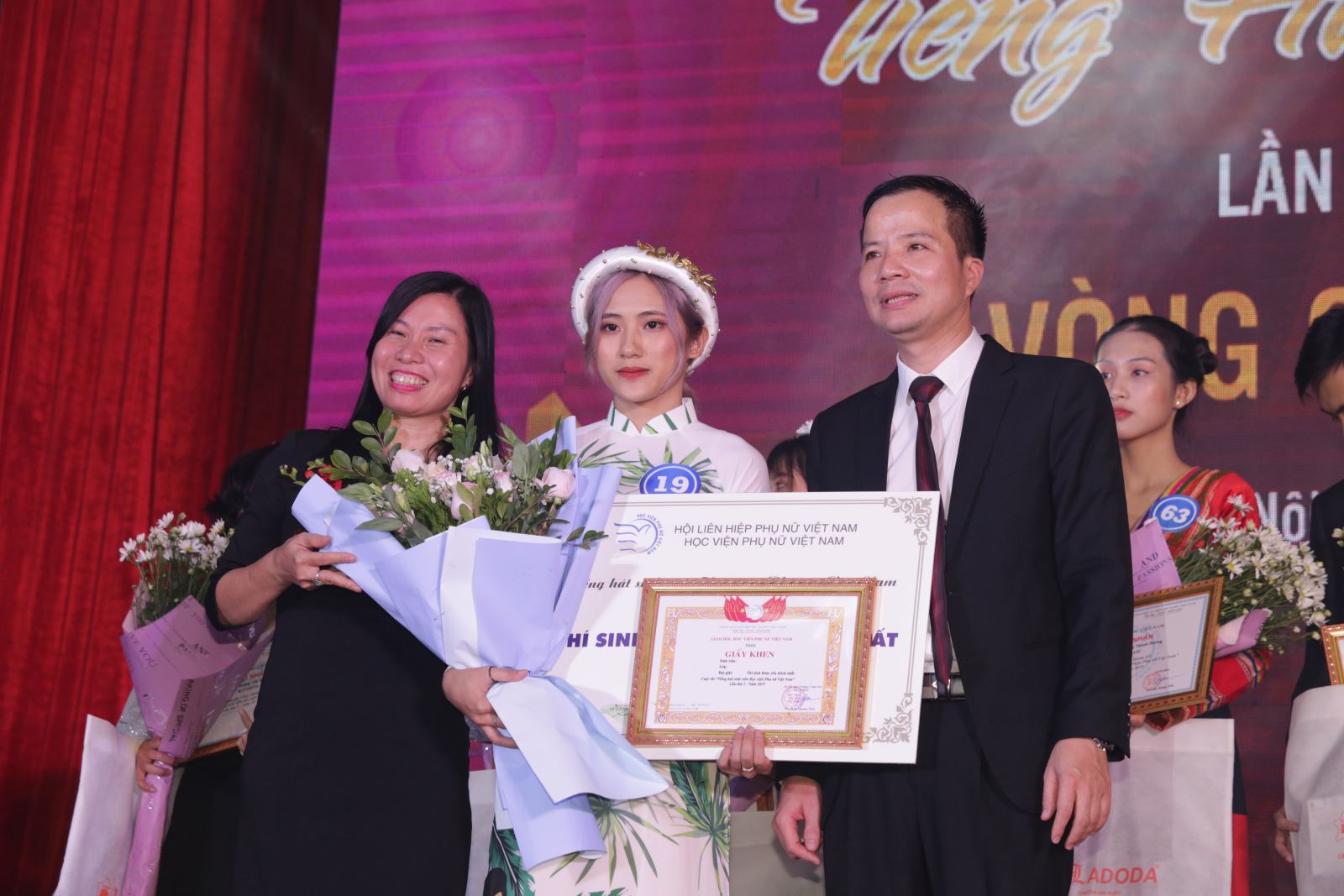 ThS. Hà Thị Thanh Vân, PGĐ Học viện tặng hoa và trao chứng nhận cho các nhà tài trợ