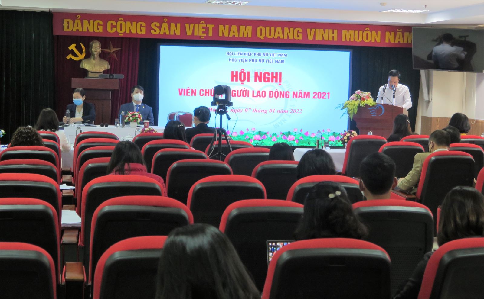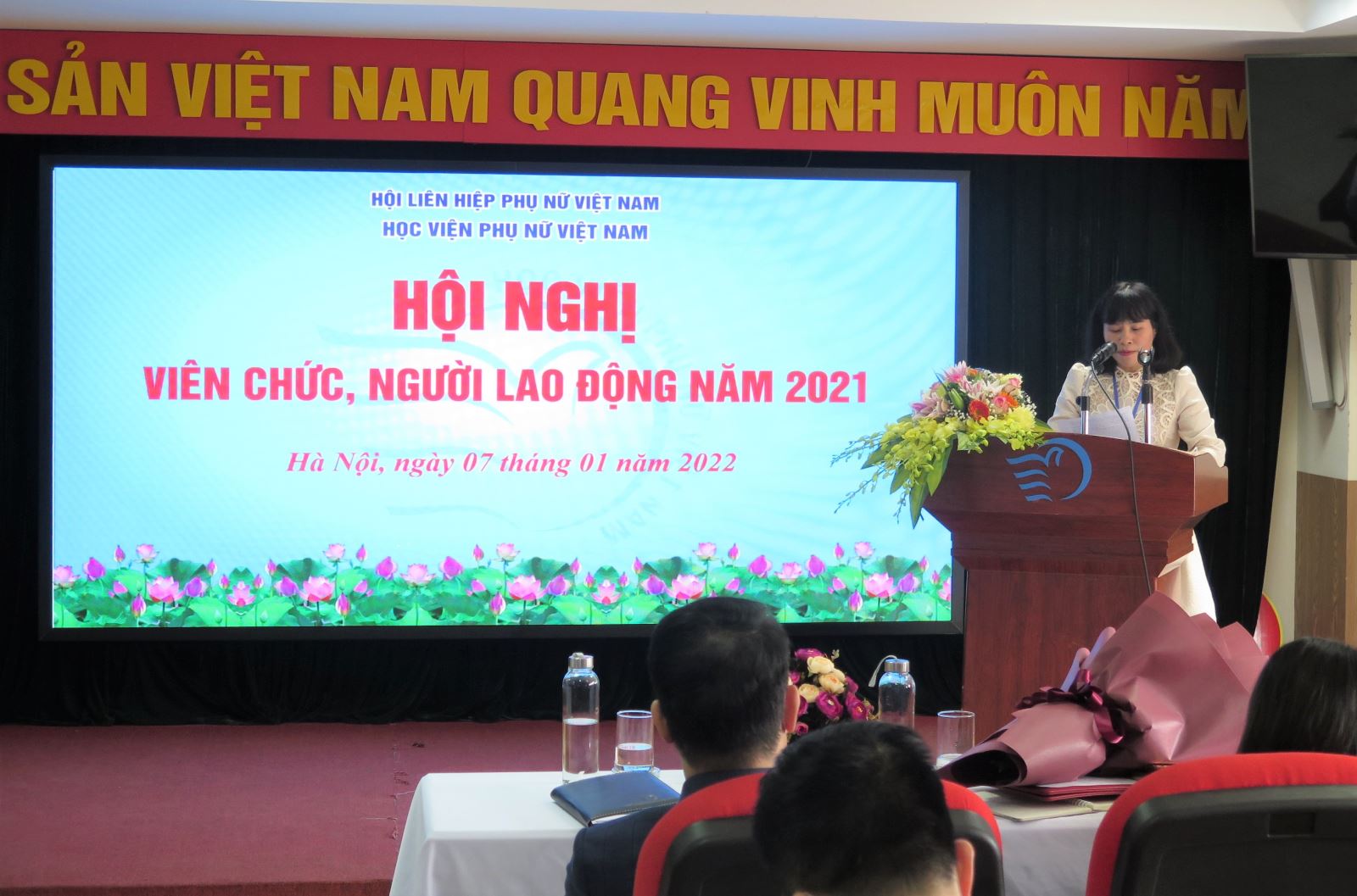 Đồng chí Dương Kim Anh – PGĐ Học viện trình bày Báo cáo kết quả thực hiện nhiệm vụ chuyên môn 2021 và Phương hướng nhiệm vụ chủ yếu năm 2022