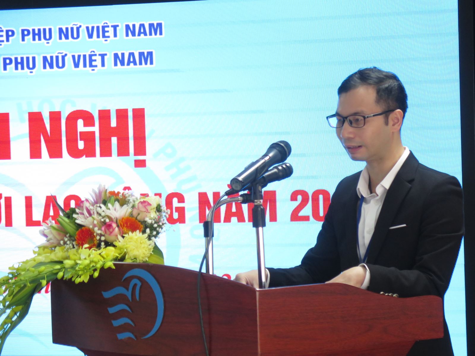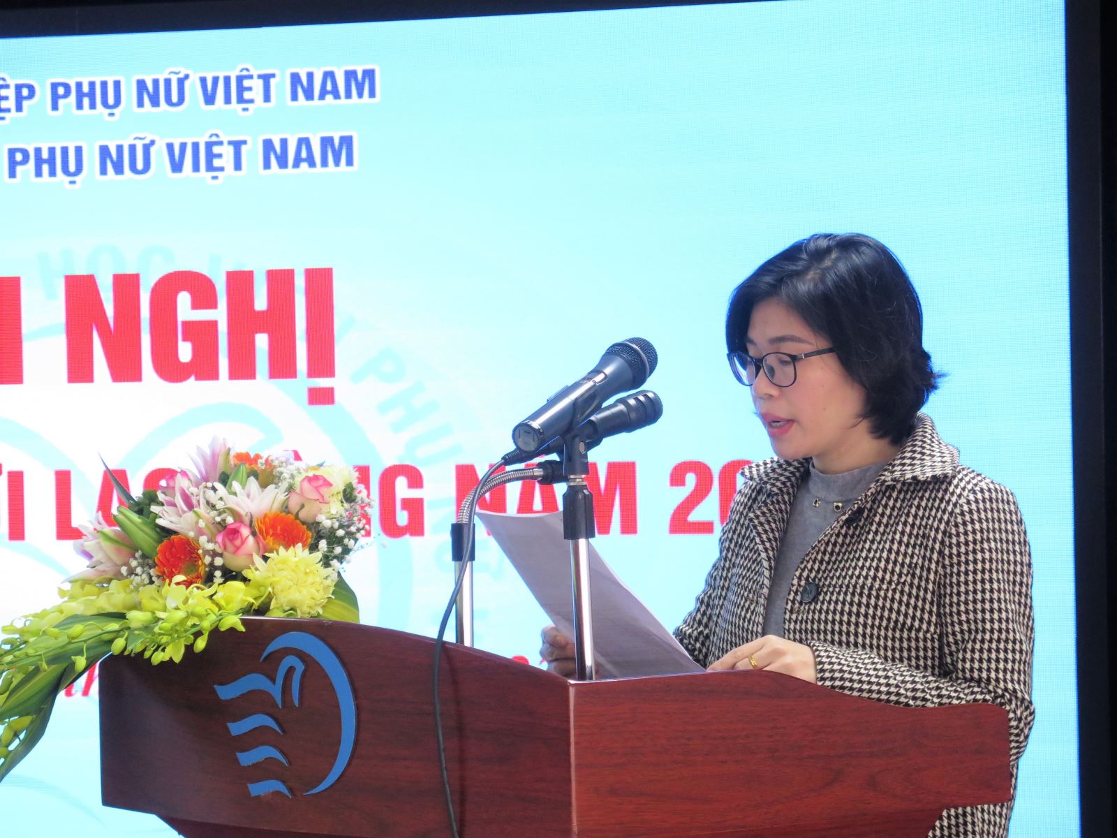 Đồng chí Trần Thị Hương, Phó Chủ tịch Hội Liên hiệp Phụ nữ Việt Nam phát biểu tại Hội nghị