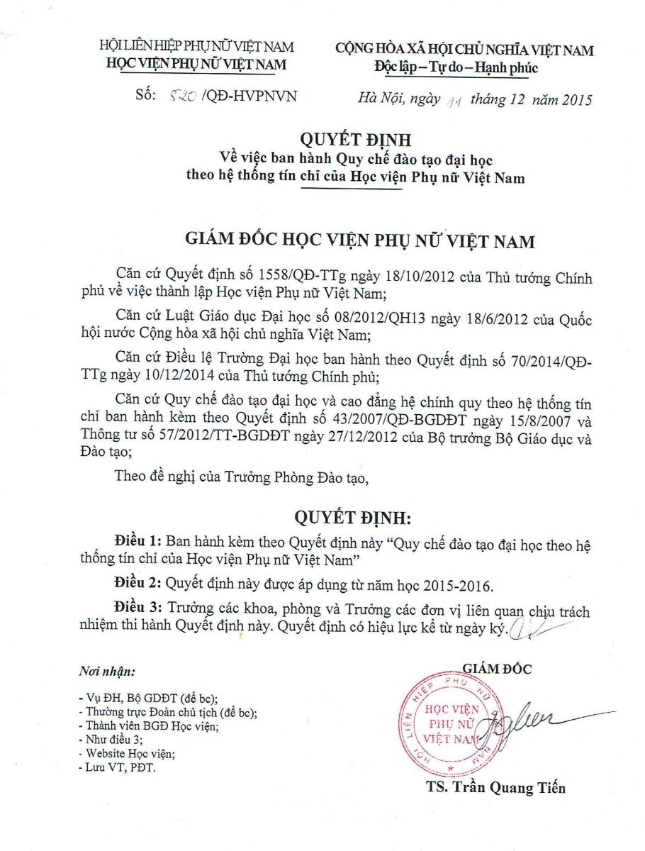 Tin tứcQuyết định ban hành Quy chế đào tạo đại học Học viện PNVN Posted on Tháng Mười Hai 14, 2015 by admin(full) 14 Th12 Tải nội dung chi tiết của Quy chế đào tạo đại học theo hệ thống tín chỉ của HV Phụ nữ Việt Nam TẠI ĐÂY admin(full) Hội nghị tổng kết công tác năm 2015 của 8 tỉnh thuộc cụm trung du miền núi phía Bắc Nhật ký trên xứ sở kim chi