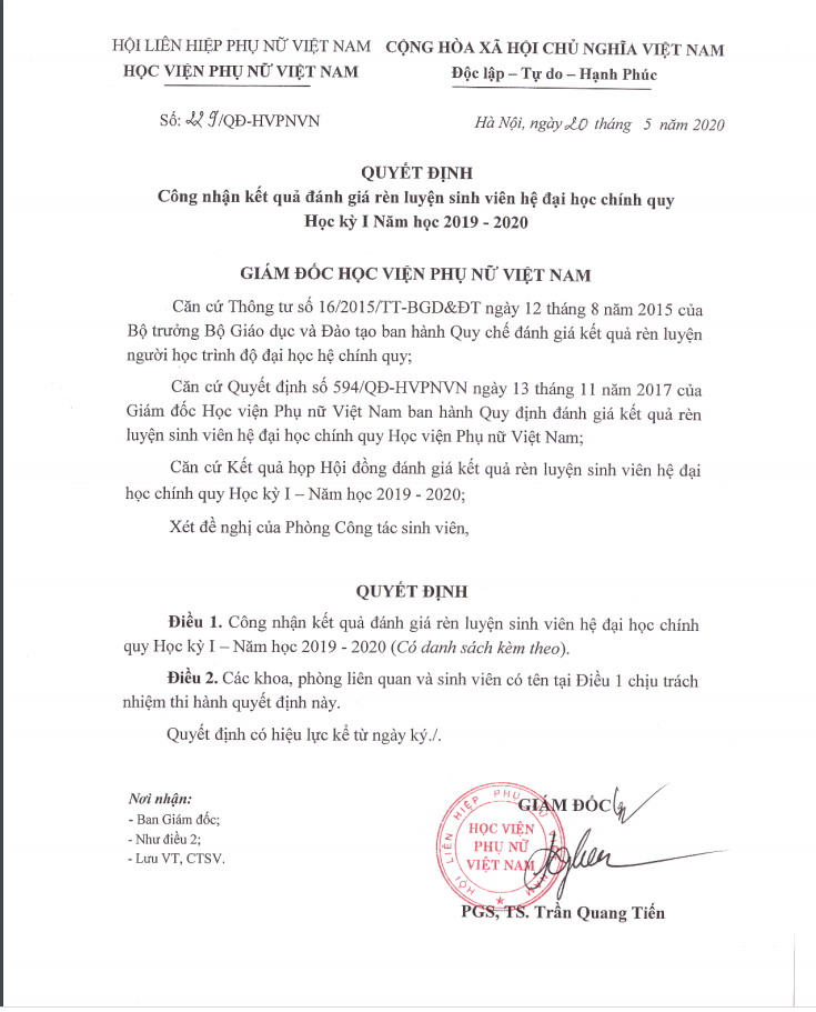 Tin tứcQuyết định công nhận đánh giá rèn luyện sinh viên HK1 năm học 2019 – 2020 Posted on Tháng Sáu 1, 2020 by admin(full) 01 Th6 Mời bạn đọc xem chi tiết Danh sách kèm theo Quyết định TẠI ĐÂY admin(full) Hội thảo Khoa học “Giới và phát triển môi trường bền vững” Quyết định cấp học bổng khuyến khích học kỳ 1 năm học 2019 – 2020