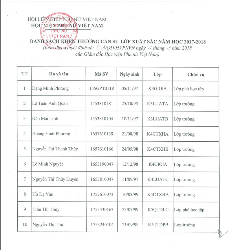 Tin tứcQuyết định khen thưởng sinh viên Posted on Tháng Mười Hai 7, 2018 by admin(full) 07 Th12 admin(full) Thông báo nội dung liên quan đến thi tuyển hợp đồng 2018 Học viện Phụ nữ Việt Nam đón chuyên gia Australia sang làm việc