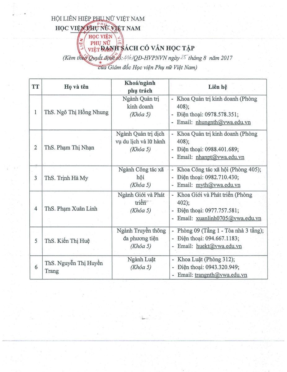 Tin tứcQuyết định phân công cố vấn học tập khóa 5 Posted on Tháng Tám 26, 2017 by admin(full) 26 Th8 admin(full) Hướng dẫn thủ tục làm THẺ SINH VIÊN Học viện Phụ nữ Việt Nam đón tân sinh viên khóa 5