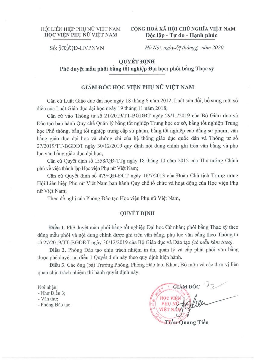 Quyết định phê duyệt mẫu phôi bằng Đại học, Thạc sĩ