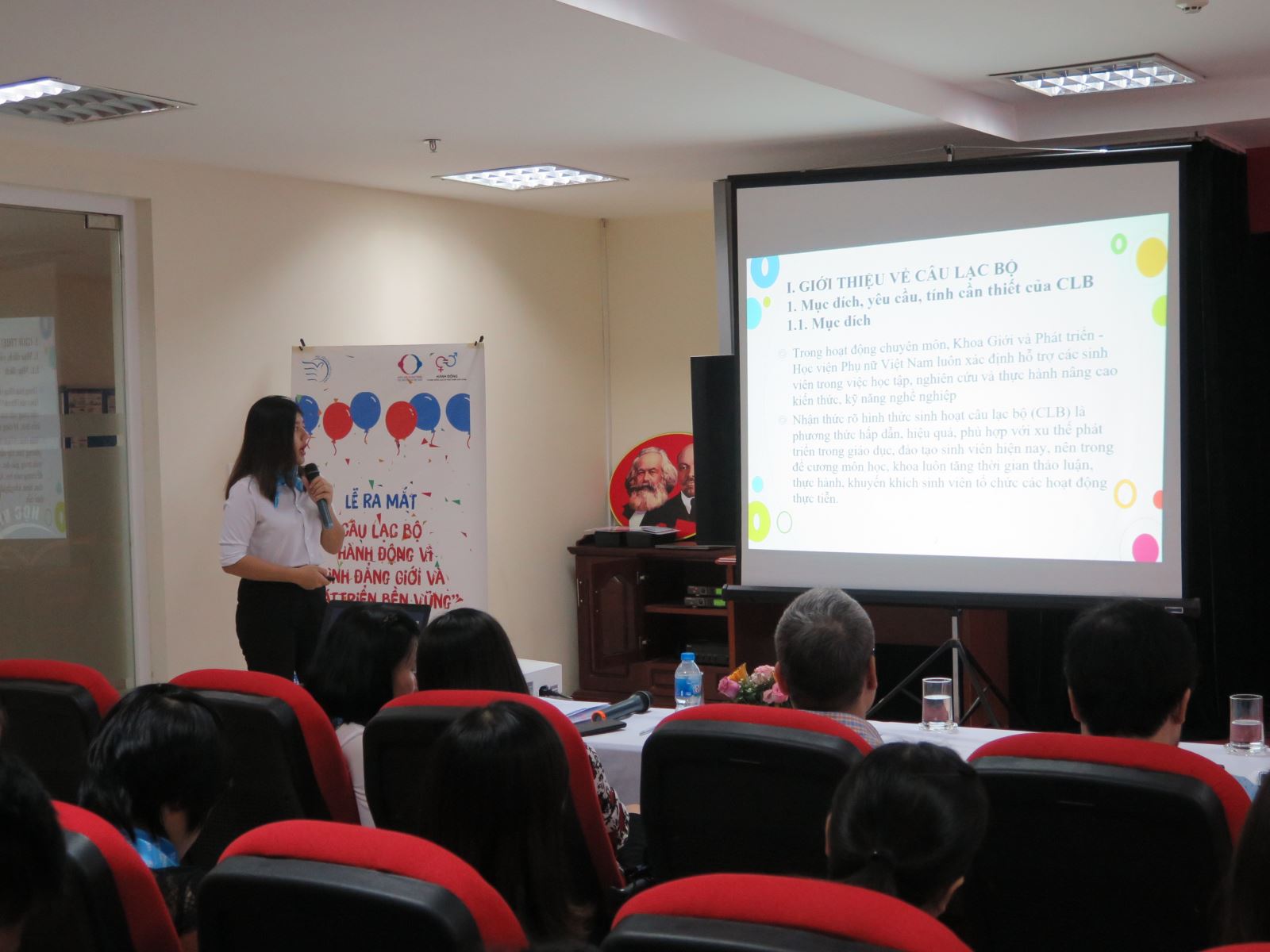 Khẳng định nhiệt huyết, quyết tâm duy trì, phát triển CLB, sinh viên Phan Thị Ngọc Diễm, Chủ nhiệm CLB chia sẻ: CLB sẽ tập hợp những sinh viên yêu thích, đam mê, quan tâm đến vấn đề giới và phát triển, tạo sân chơi lành mạnh cho sinh viên và giúp lãnh đạo Khoa, Học viện nắm bắt được tâm tư, nguyện vọng thực tế của sinh viên. Sự quan tâm và tham gia nhiệt tình của sinh viên trong CLB sẽ giúp các bạn thực hành kiến thức, nâng cao năng lực nghề nghiệp cho mình ngay từ khi còn ngồi trên ghế giảng đường.