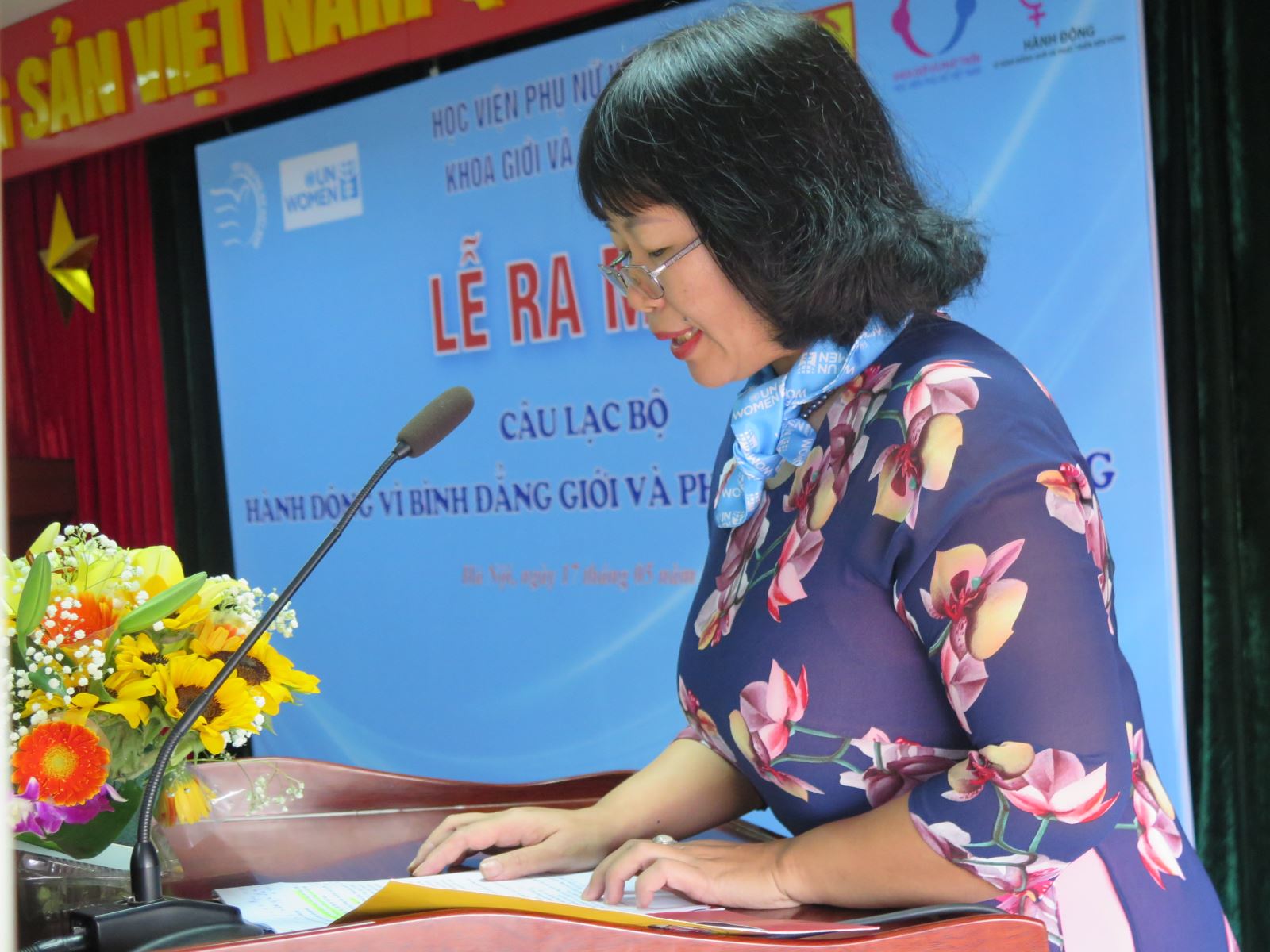 Phát biểu tại lễ ra mắt CLB, TS. Dương Kim Anh khẳng định sự ra đời của CLB là kết quả của sư nỗ lực, cố gắng của cô và trò Khoa Giới và Phát triển vì mục tiêu bình đẳng, tiến bộ và công bằng cho tất cả mọi người. Sự ra đời của CLB là một trong những minh chứng cho việc hướng đến hành động vì bình đẳng giới và phát triển bền vững cho phụ nữ, trẻ em và toàn xã hội, thiết thực hưởng ứng phát động của Hội Liên hiệp Phụ nữ Việt Nam về “An toàn cho phụ nữ và trẻ em” năm 2019 và những năm tiếp theo.
