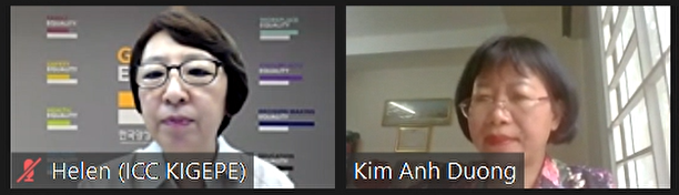 Bà Cho Haelim (Helen), Giám đốc Trung tâm Giao lưu Hợp tác Viện Thúc đẩy Bình đẳng giới KIGEPE và bà Dương Kim Anh, Phó Giám đốc