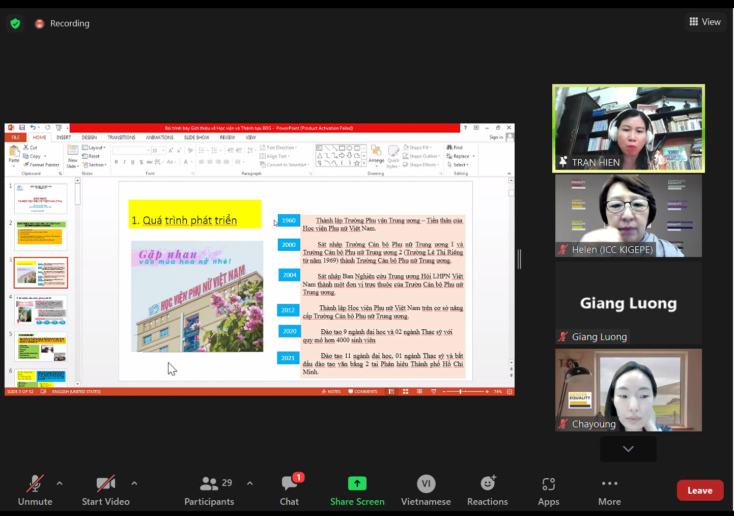 TS.Trần Thị Thu Hiền, Phó Khoa Giới và Phát triển, Học viện Phụ nữ Việt Nam giới thiệu về Học viện và các số liệu của Việt Nam